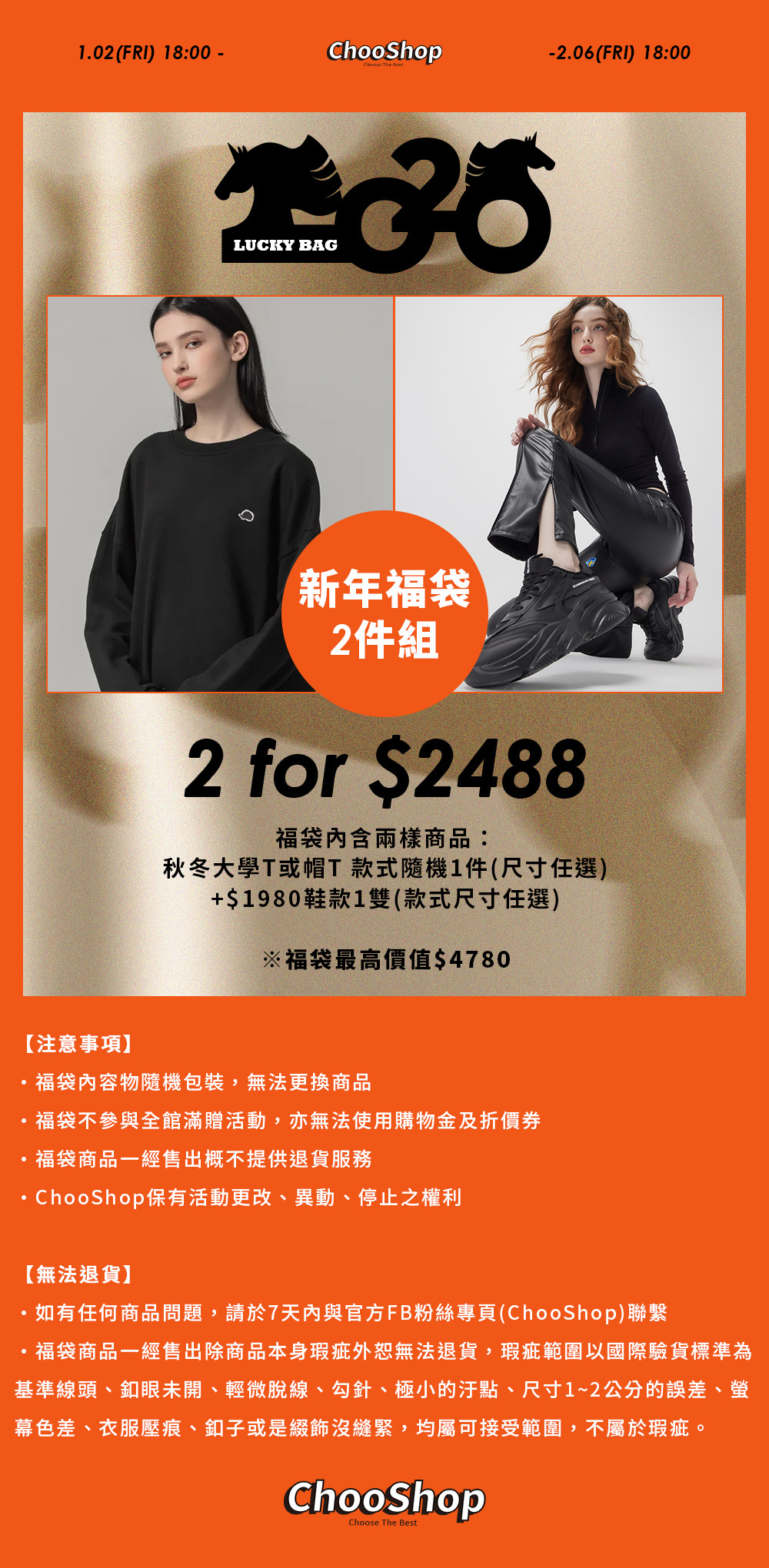 【新年福袋2件組$2488】 大學T/帽T(款式隨機/尺寸可選)+休閒鞋 #此福袋無贈品