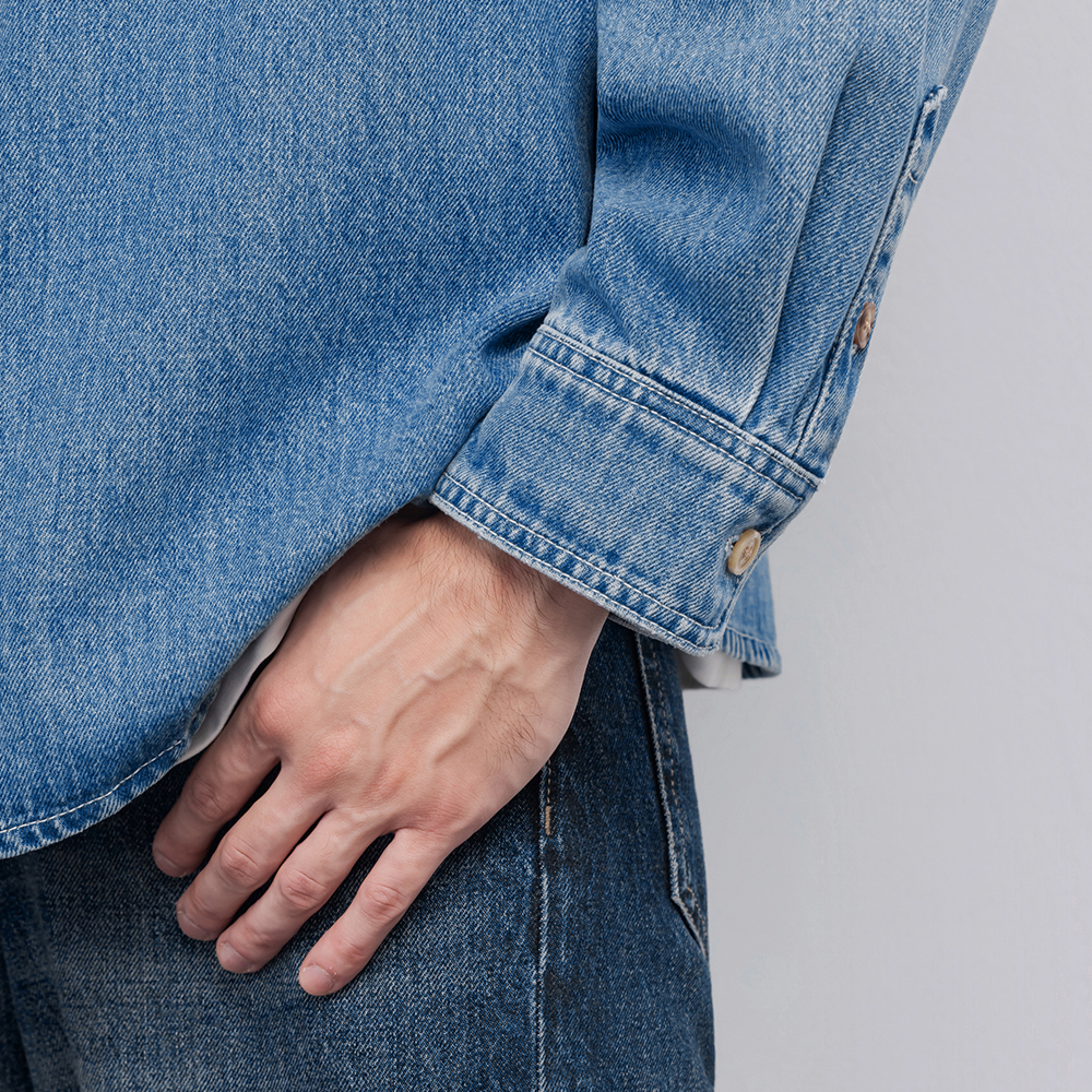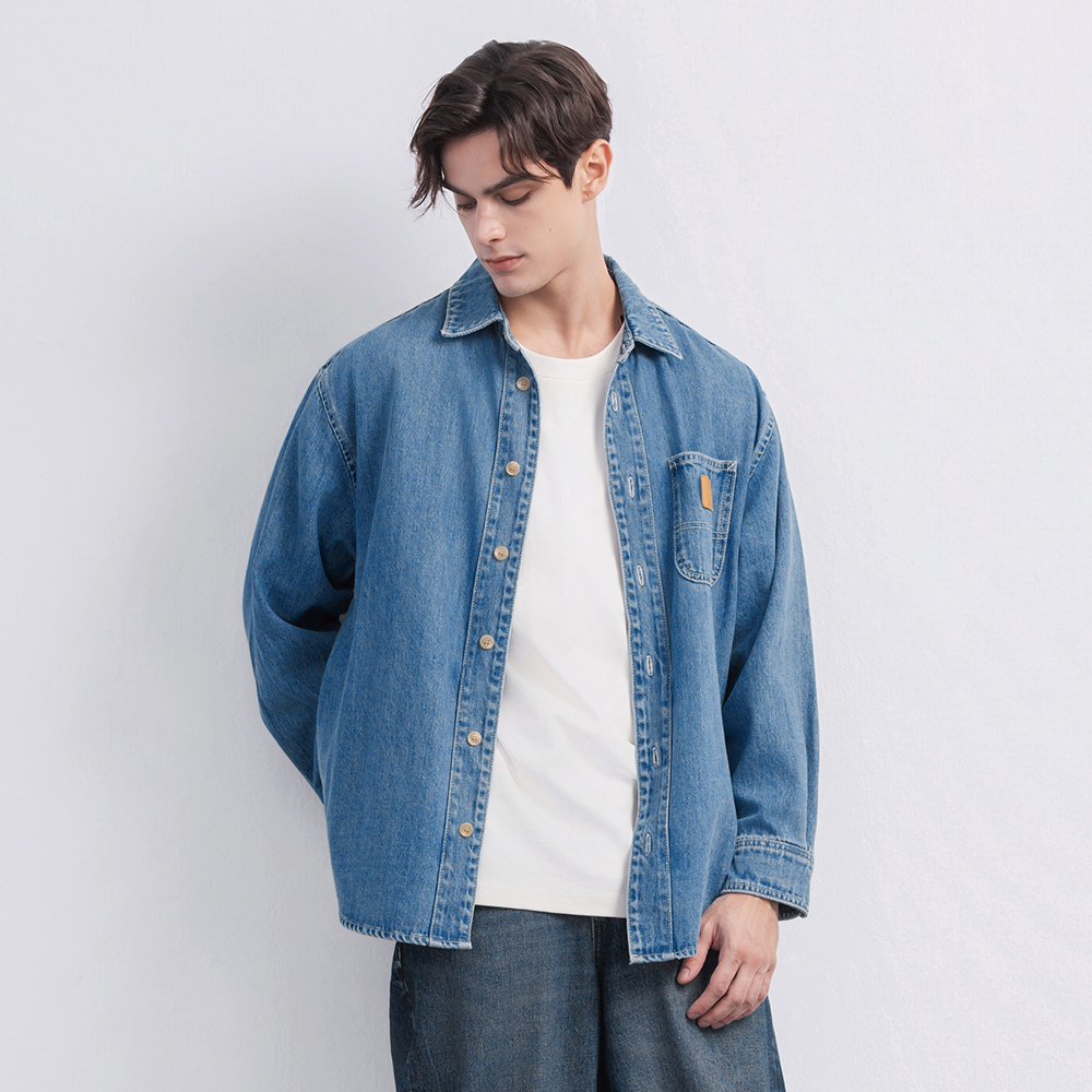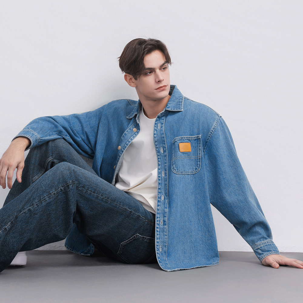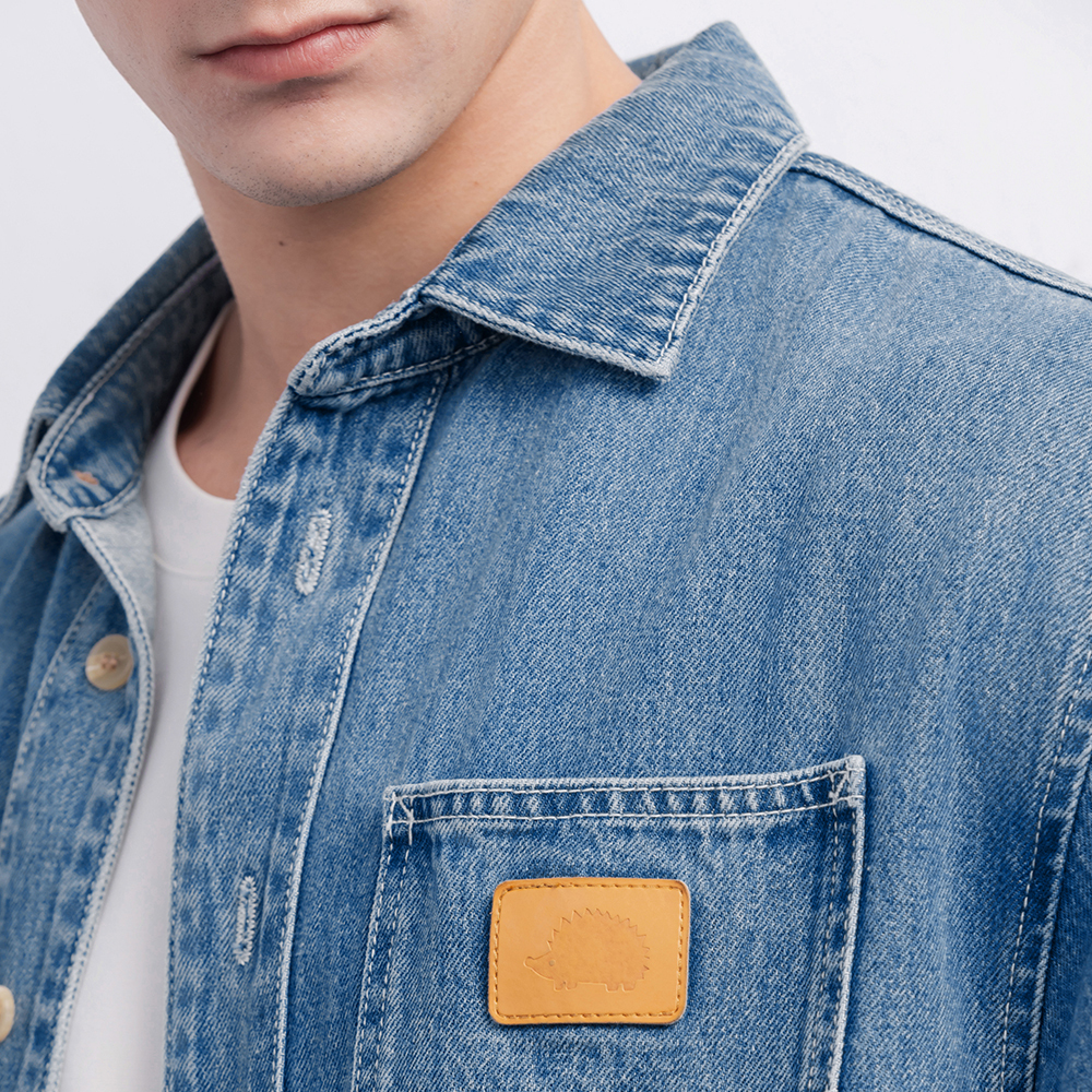 ▹胸前單口袋設計,壓印皮革LOGO低調質感點綴