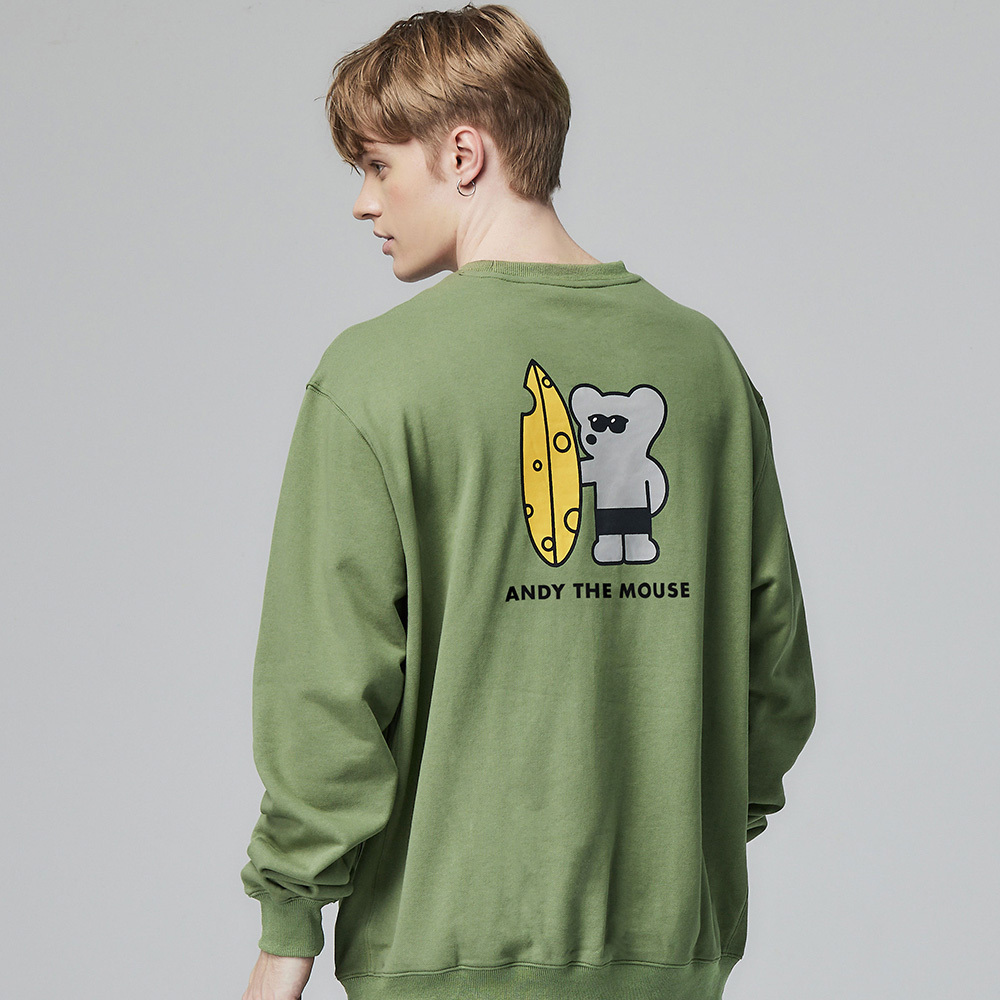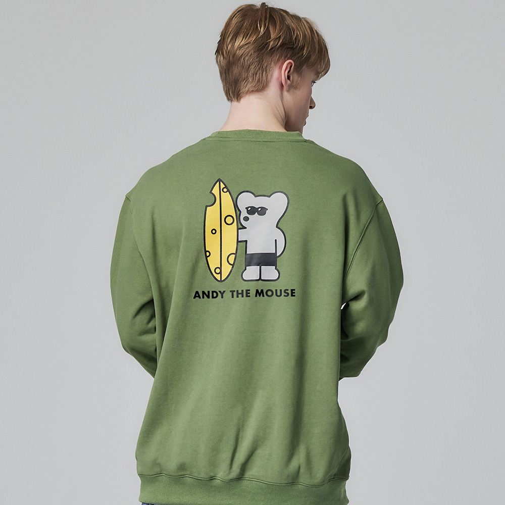 (現貨)ANDY THE MOUSE安迪老鼠-舒適純棉大學T(衝浪小鼠)-森林綠