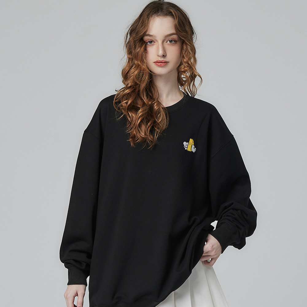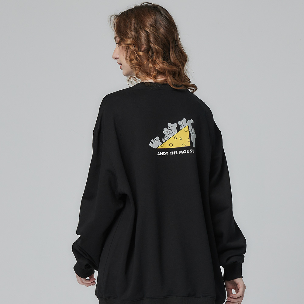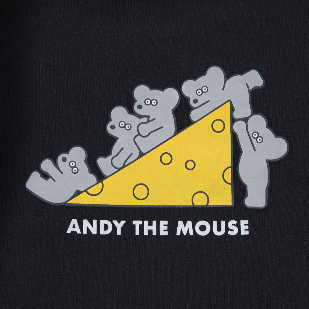 (現貨)ANDY THE MOUSE安迪老鼠-舒適純棉大學T(溜溜起司)-黑色
