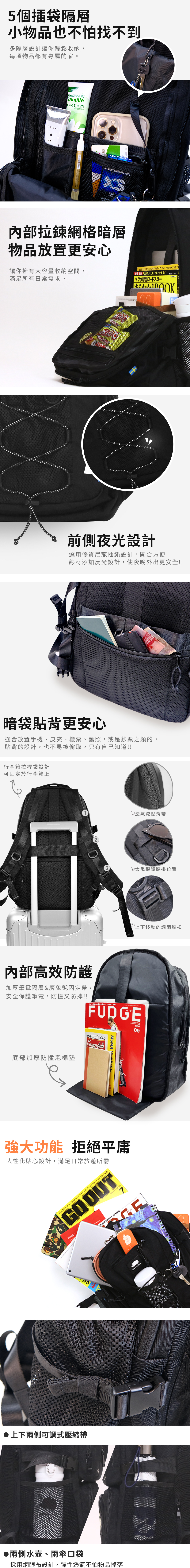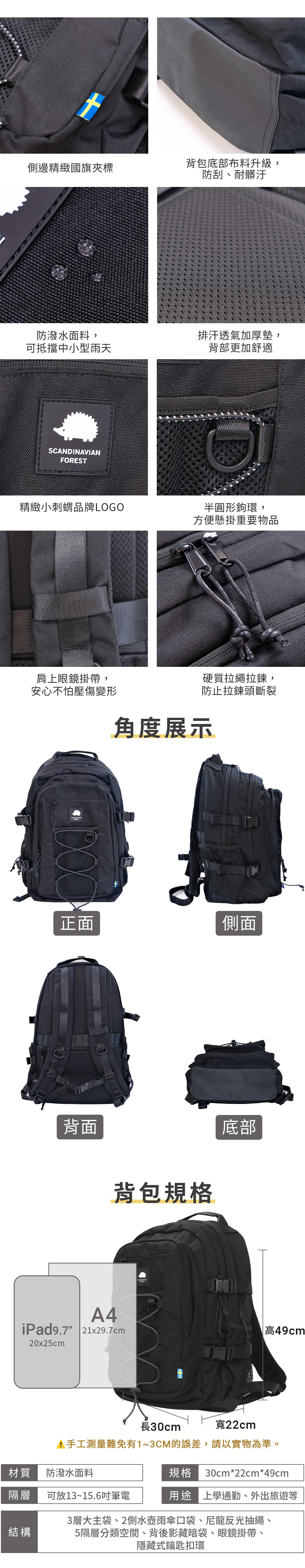 ▸可放置:14吋電腦、A4書籍、A5筆記本、長夾、長袖衣物、