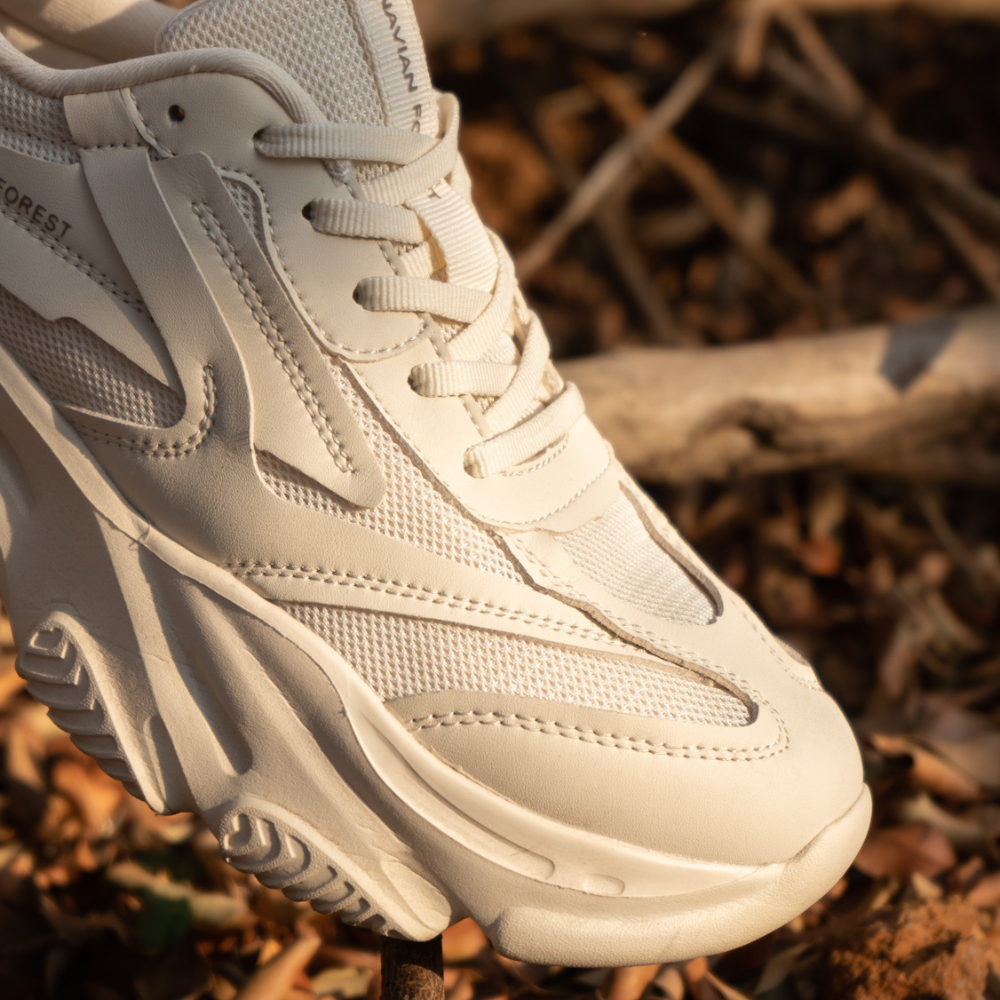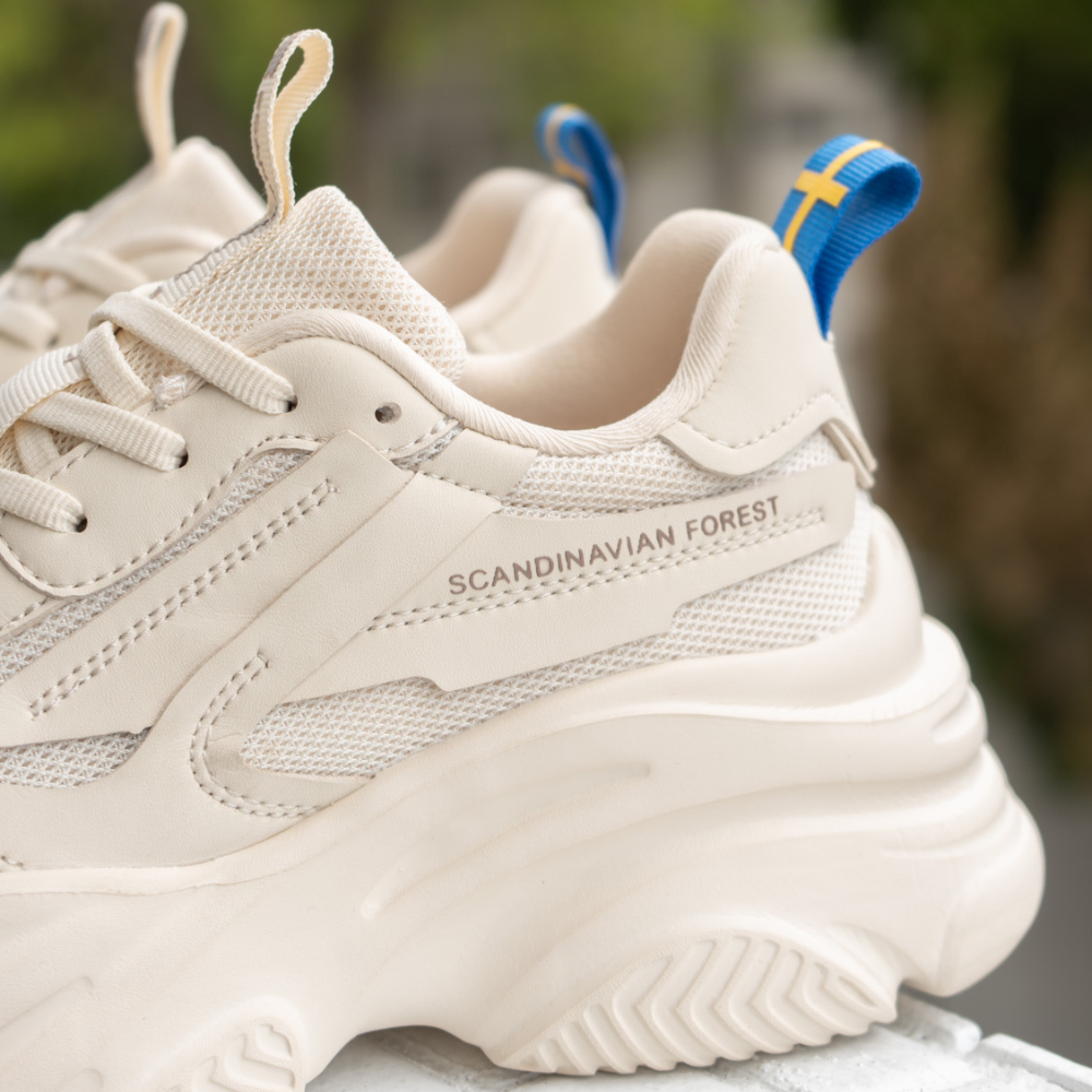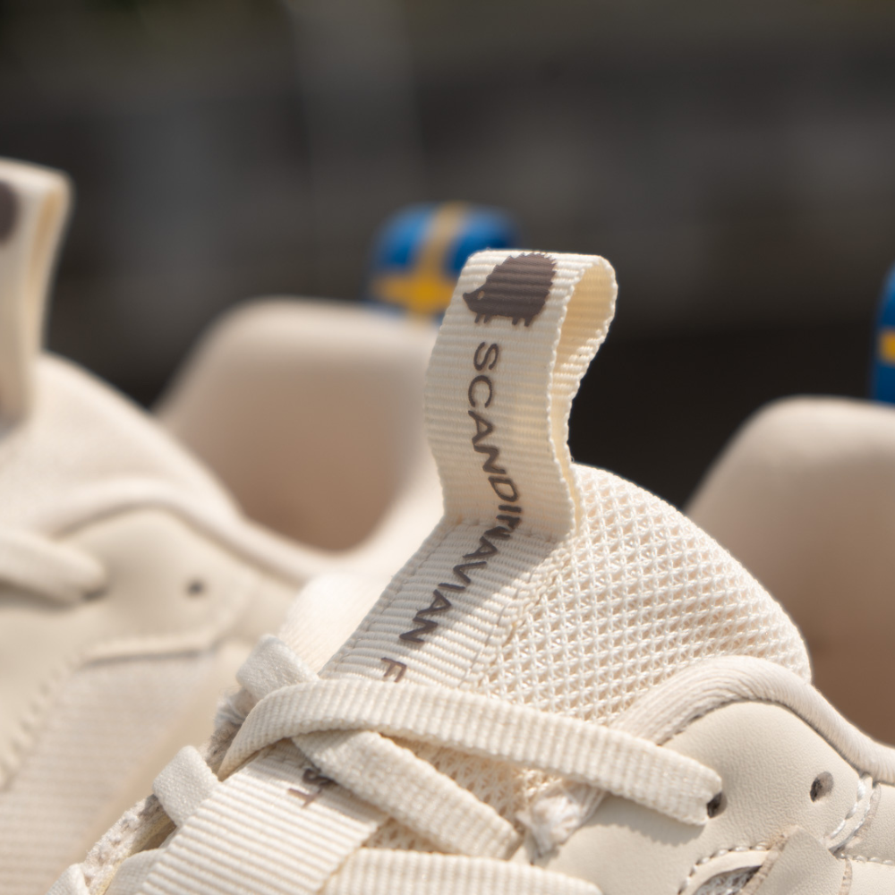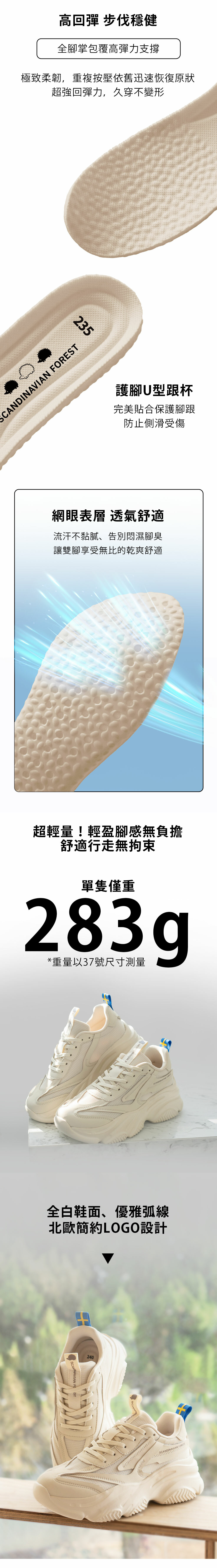 ▹全白鞋面、優雅弧線、北歐簡約LOGO設計