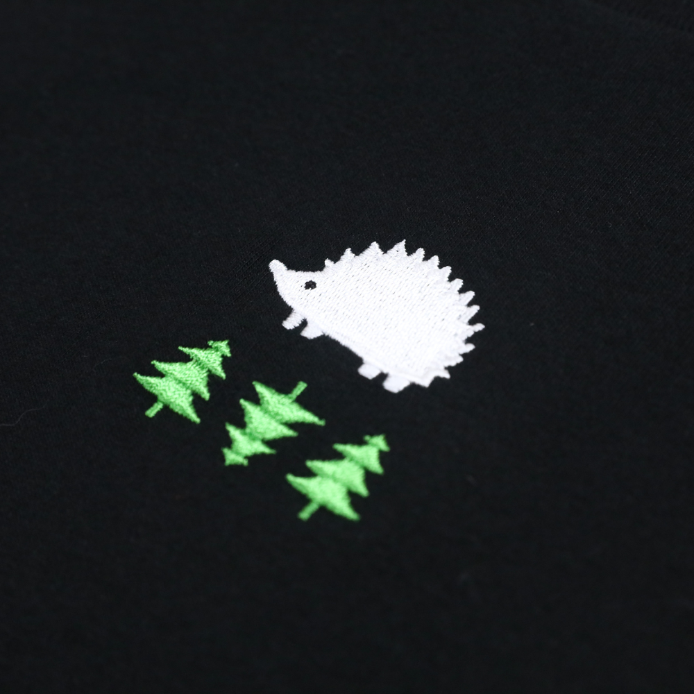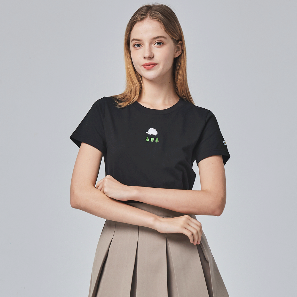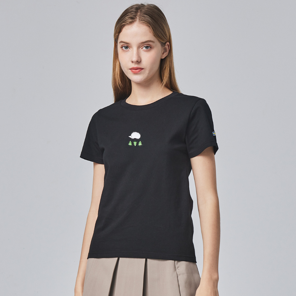 (現貨)SCANDINAVIAN FOREST北歐小刺蝟-森林刺蝟電繡雙面磨毛純棉短T-女版-黑色