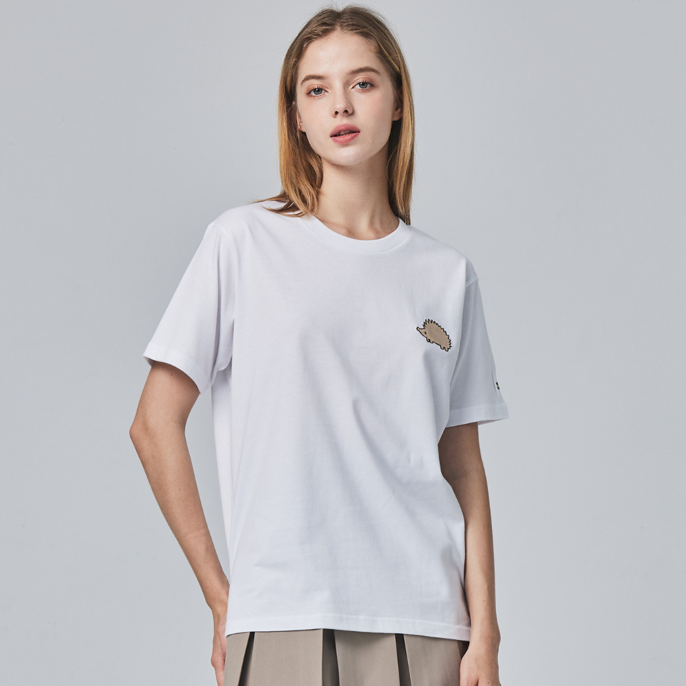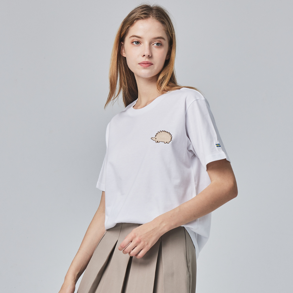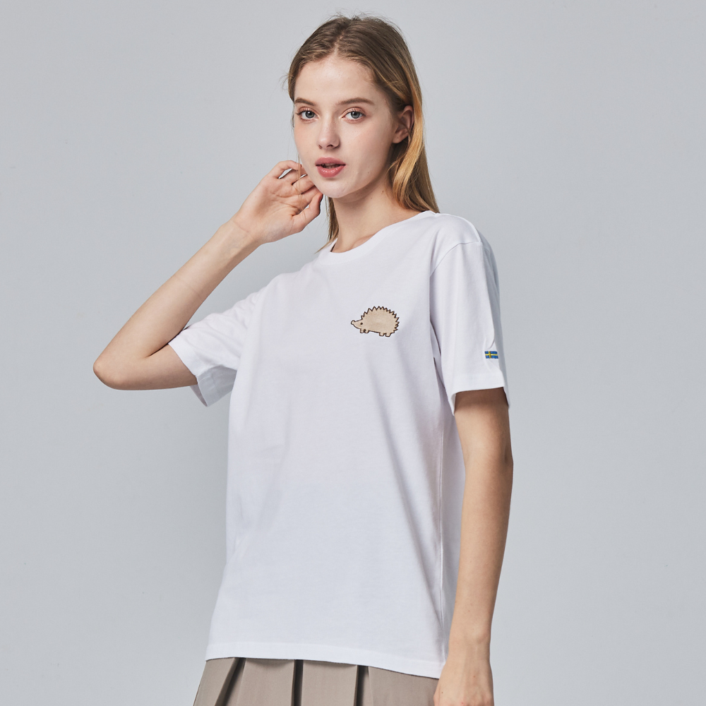 (現貨)SCANDINAVIAN FOREST北歐小刺蝟-酷甜刺蝟電繡純棉磨毛短T-白色
