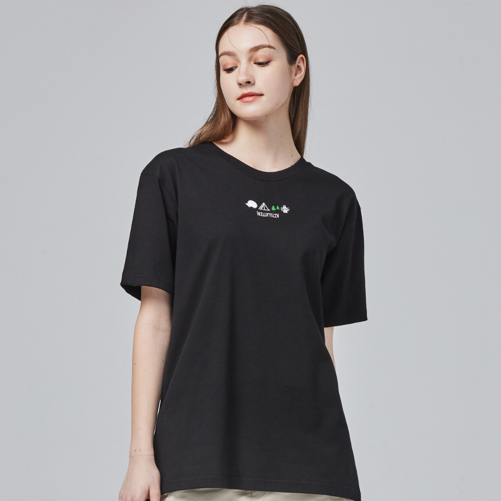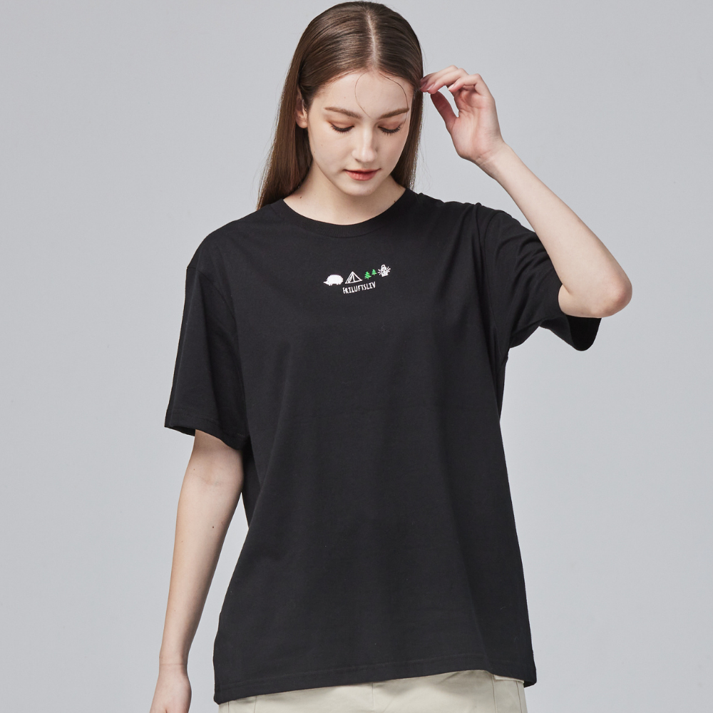 (現貨)SCANDINAVIAN FOREST北歐小刺蝟-雙面磨毛16支純棉T-露營刺蝟-黑色