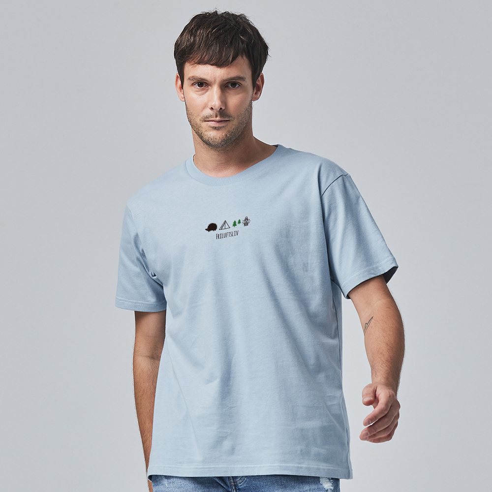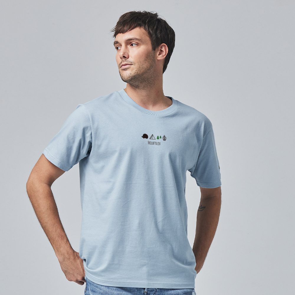 (現貨)SCANDINAVIAN FOREST北歐小刺蝟-露營刺蝟電繡純棉磨毛短T-霧藍