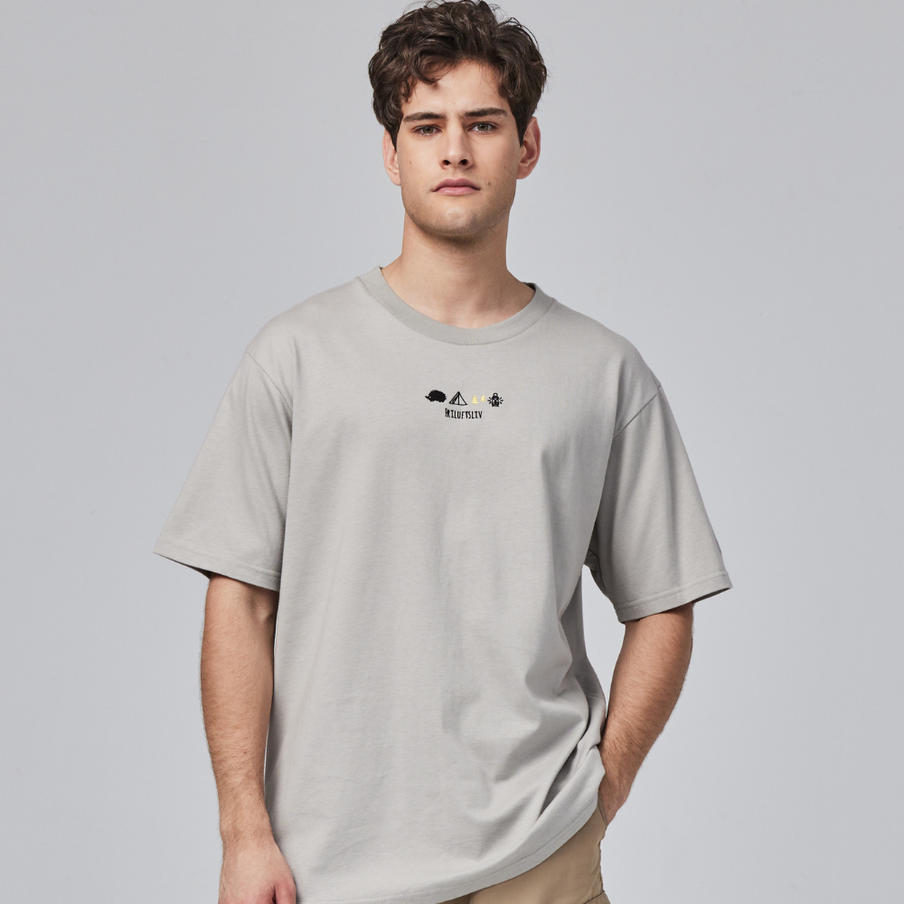(現貨)SCANDINAVIAN FOREST北歐小刺蝟-雙面磨毛16支純棉T-露營刺蝟-米灰