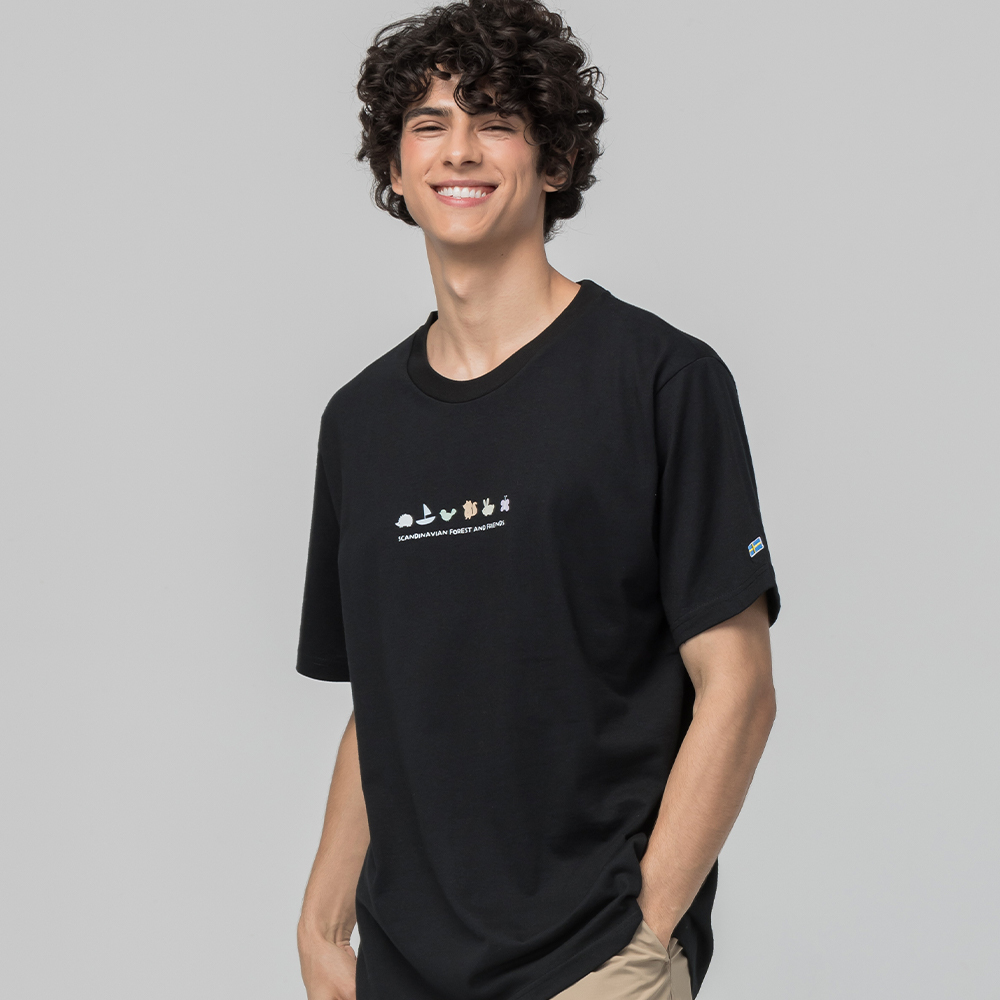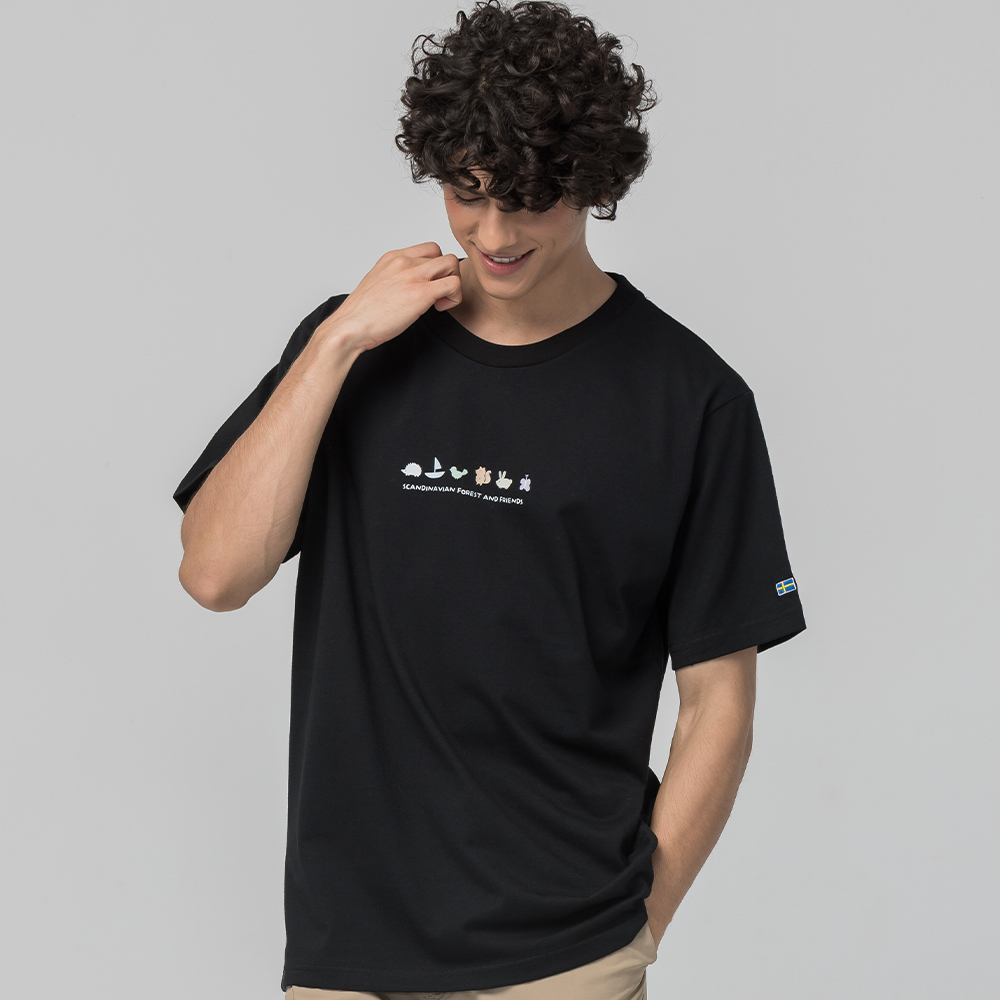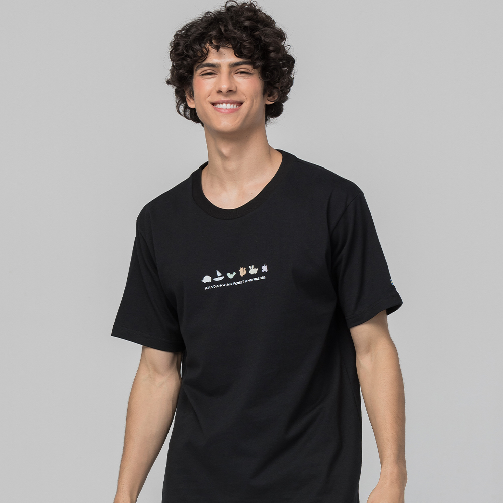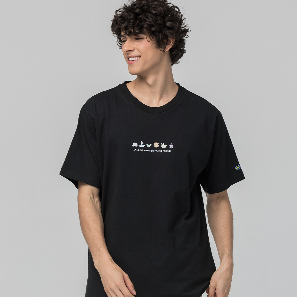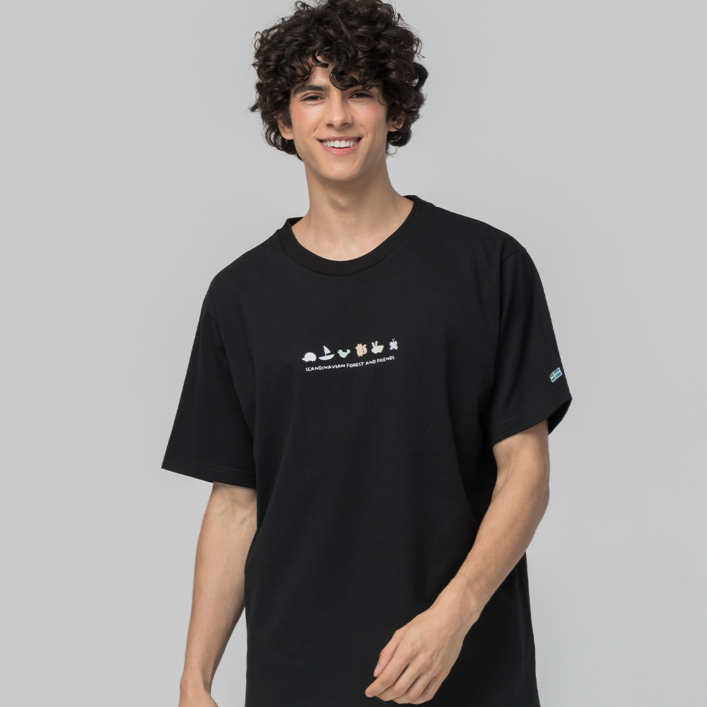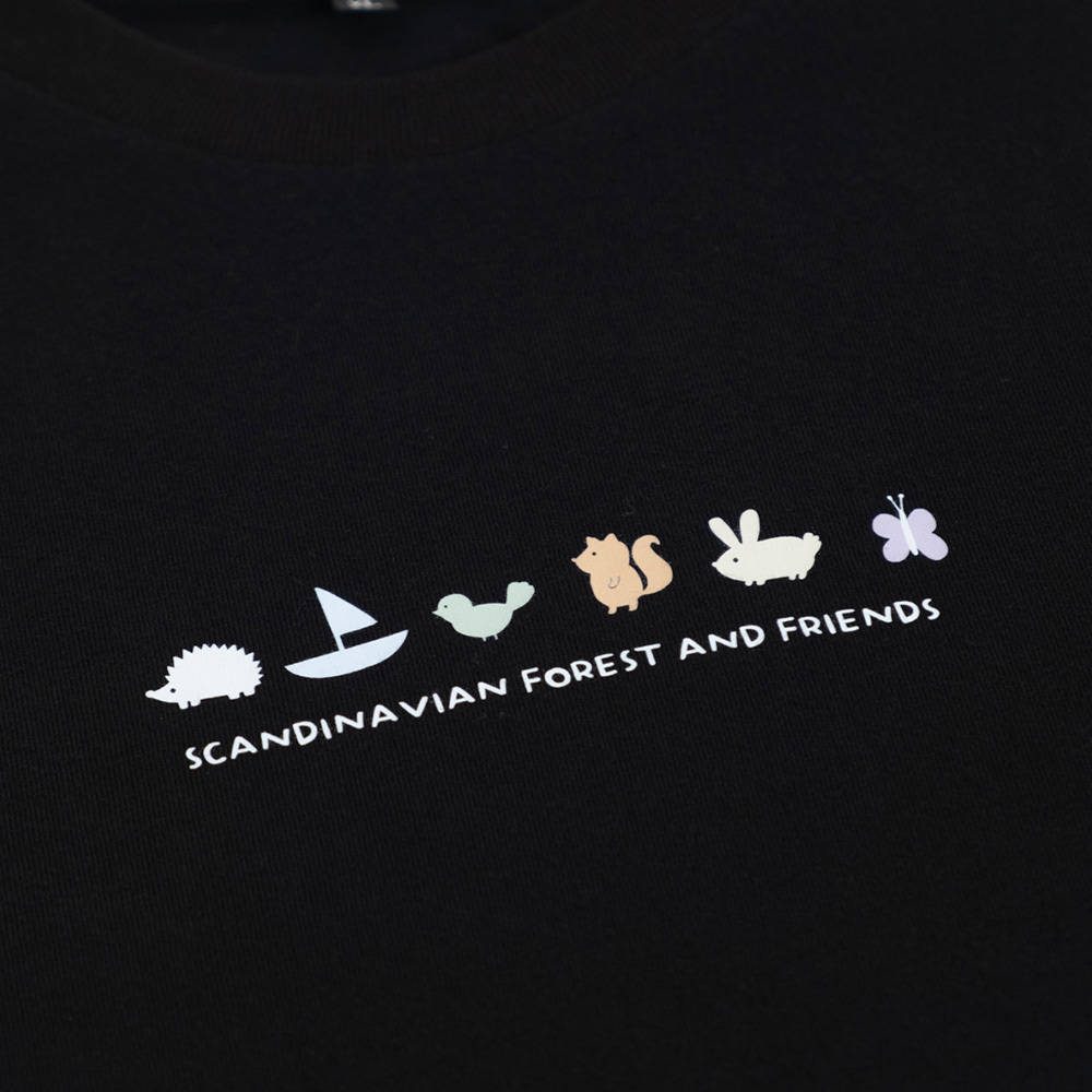 (現貨)SCANDINAVIAN FOREST北歐小刺蝟-雙面磨毛16支純棉T-森林夥伴-黑色