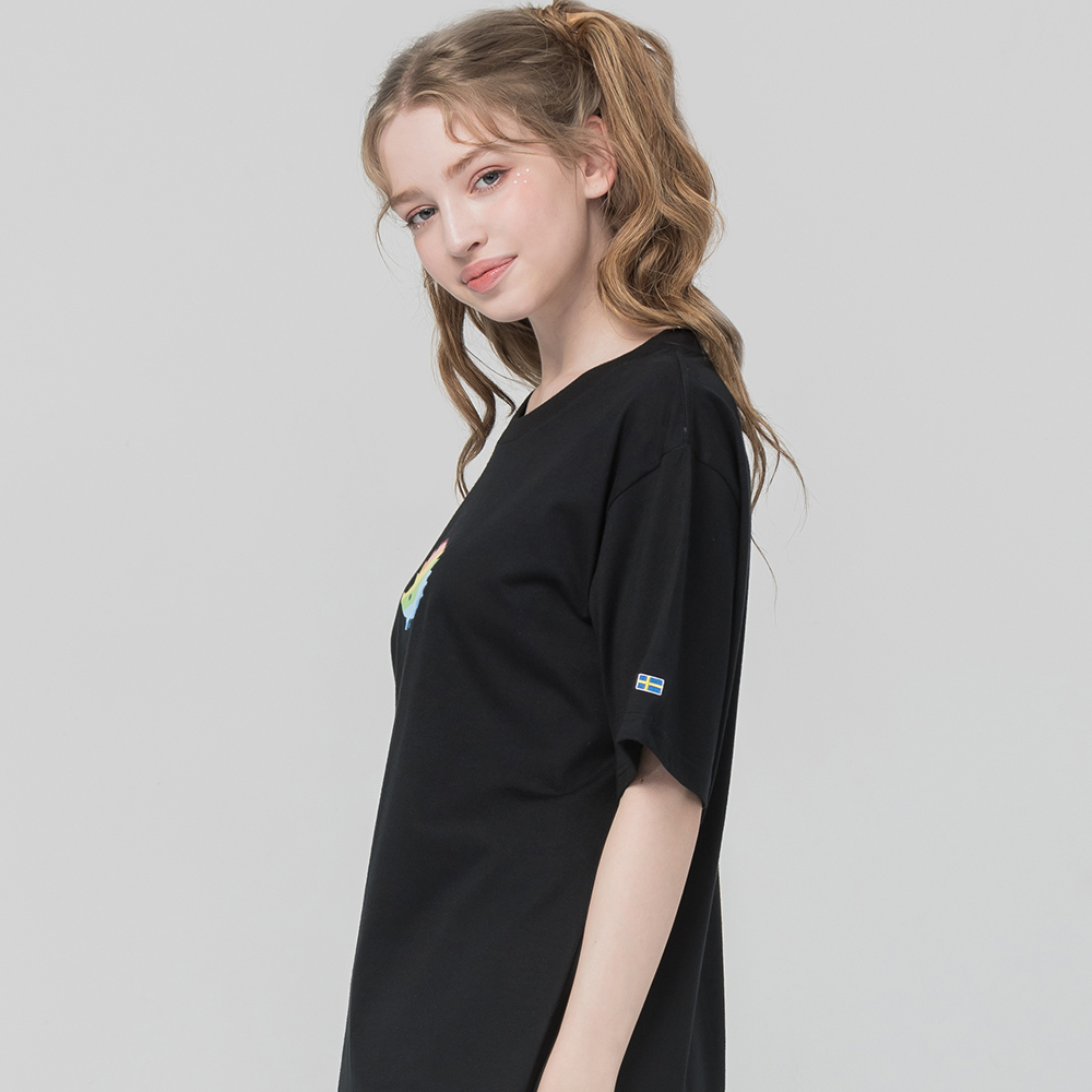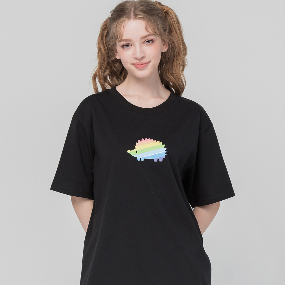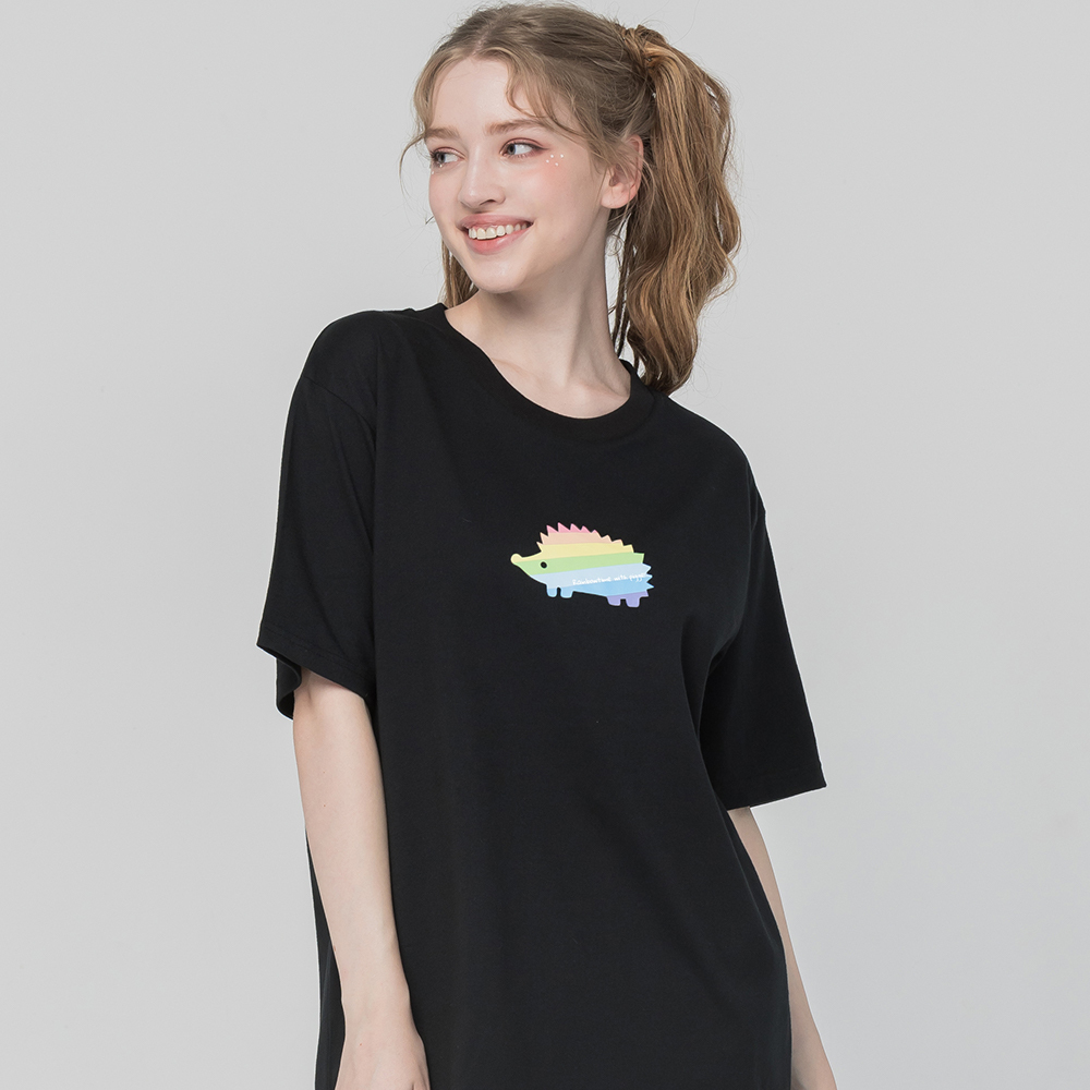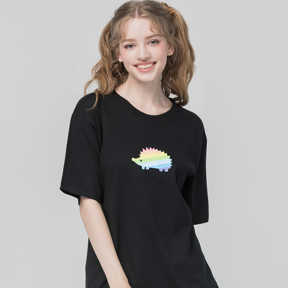 (現貨)SCANDINAVIAN FOREST北歐小刺蝟-雙面磨毛16支純棉T-陽光彩虹-黑色