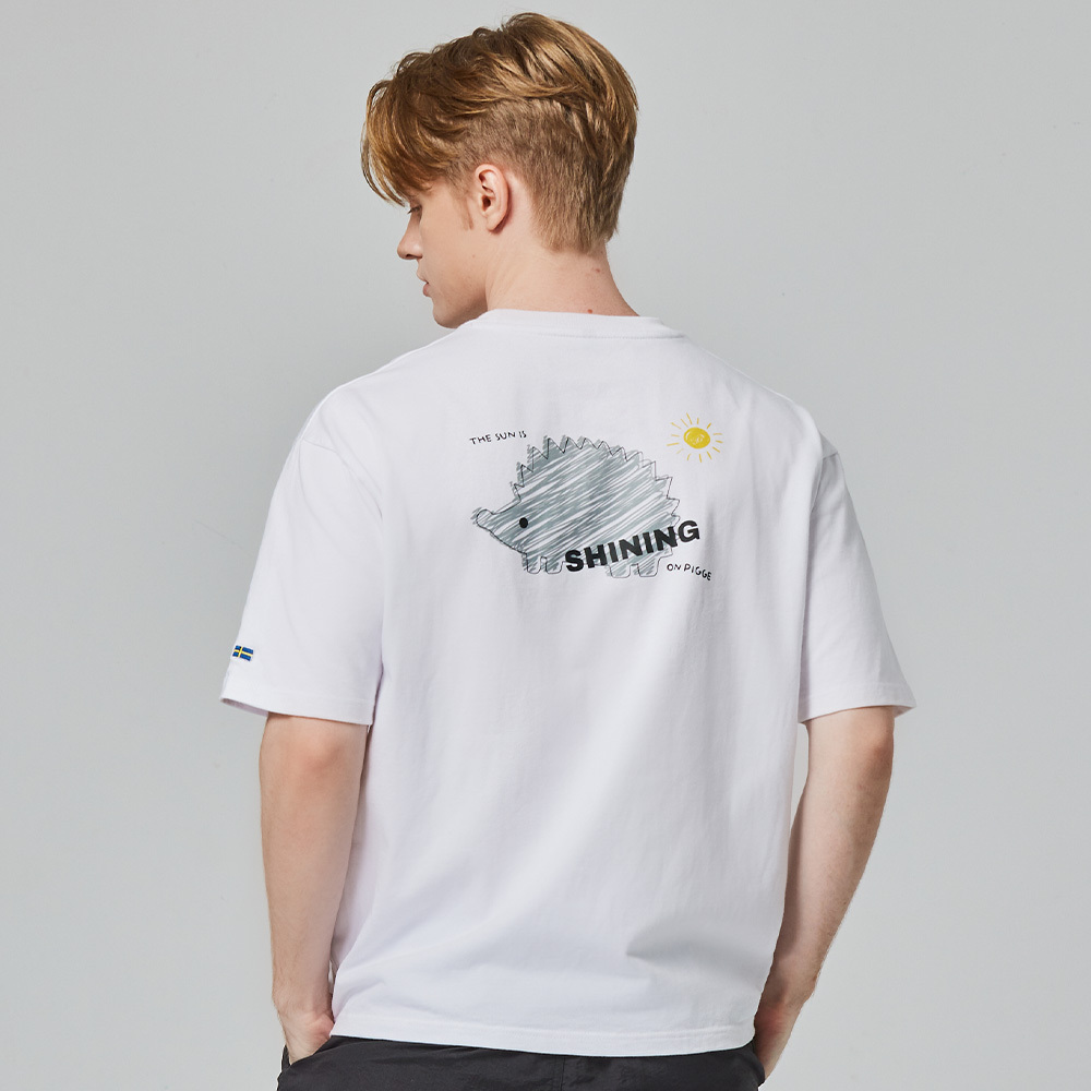 【買就送☀️刺蝟皮革側背包(兩款隨機)】(現貨)SCANDINAVIAN FOREST北歐小刺蝟-重磅10oz厚磅寬版20支純棉T-夏日光浴-白色