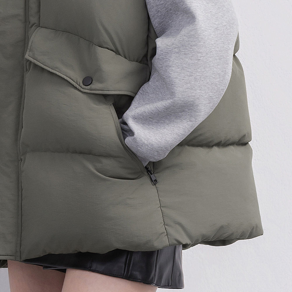 ▹ 雙側斜插口袋實用又保暖,讓雙手隨時有溫暖的歸處