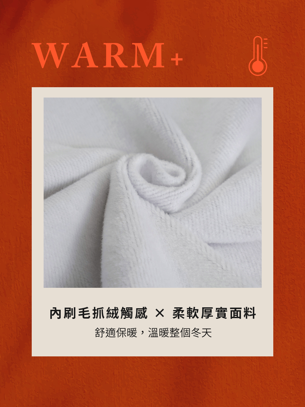▹採用溫暖內刷毛,結合細膩抓絨觸感