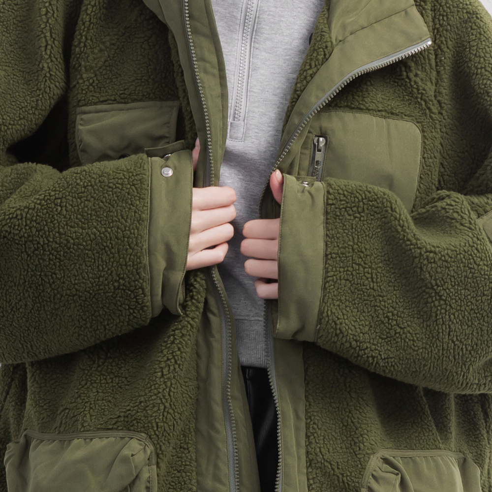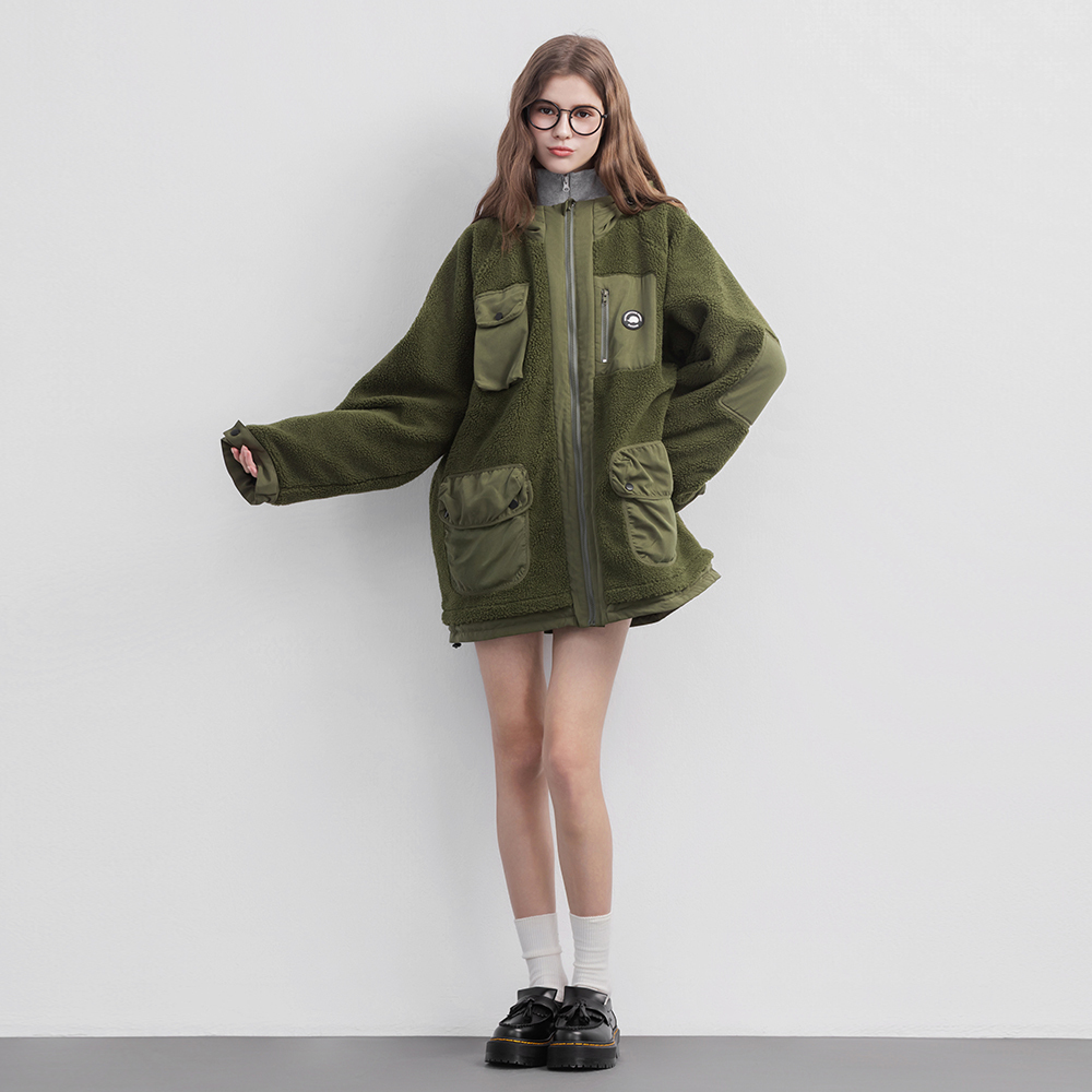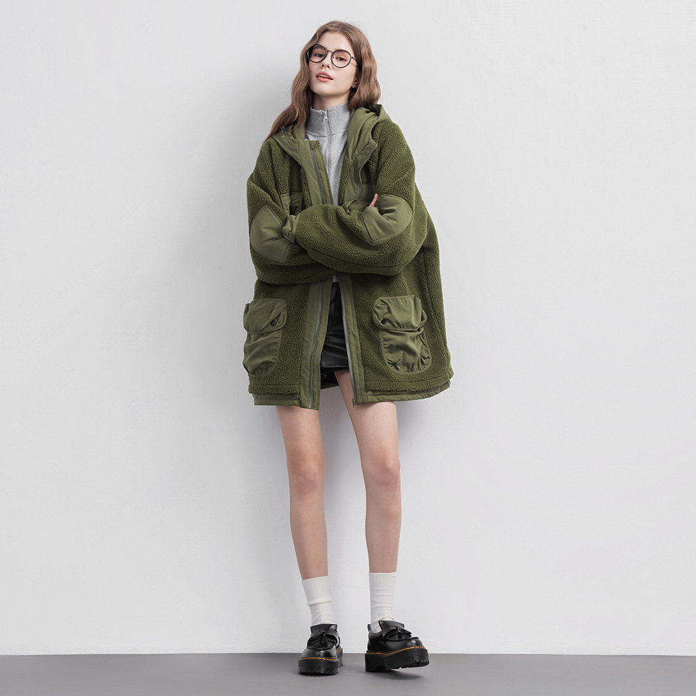 ▹同色系羊羔絨 × 質感登山布拼接,質感升級