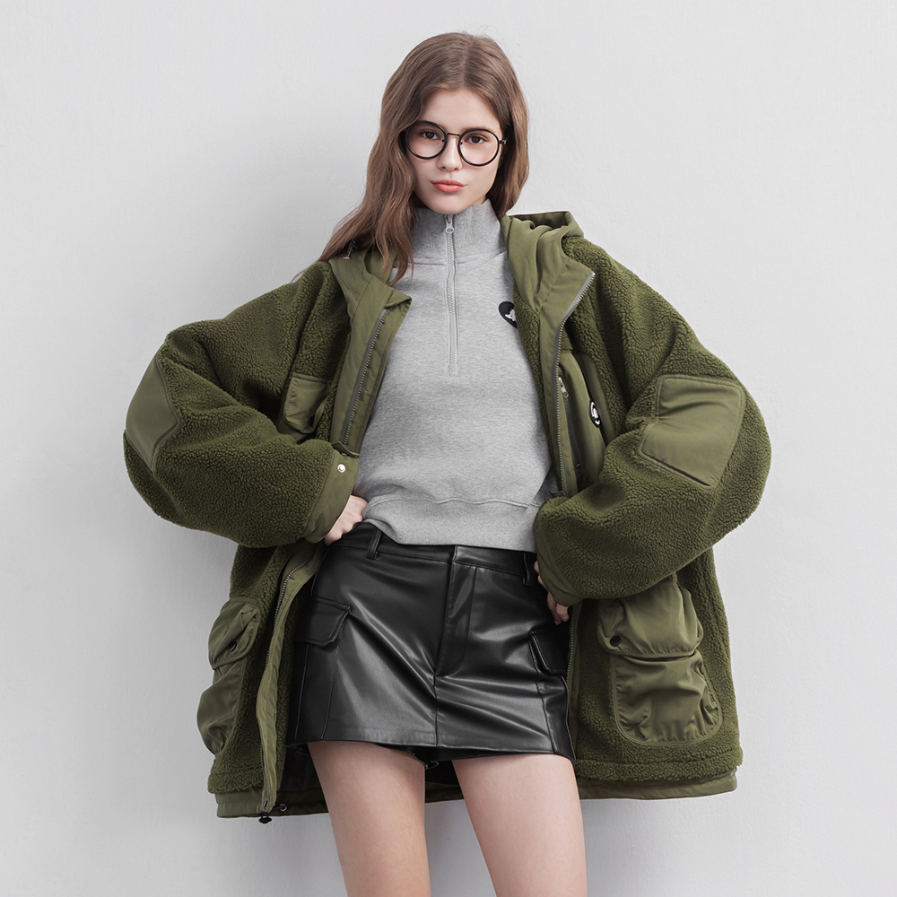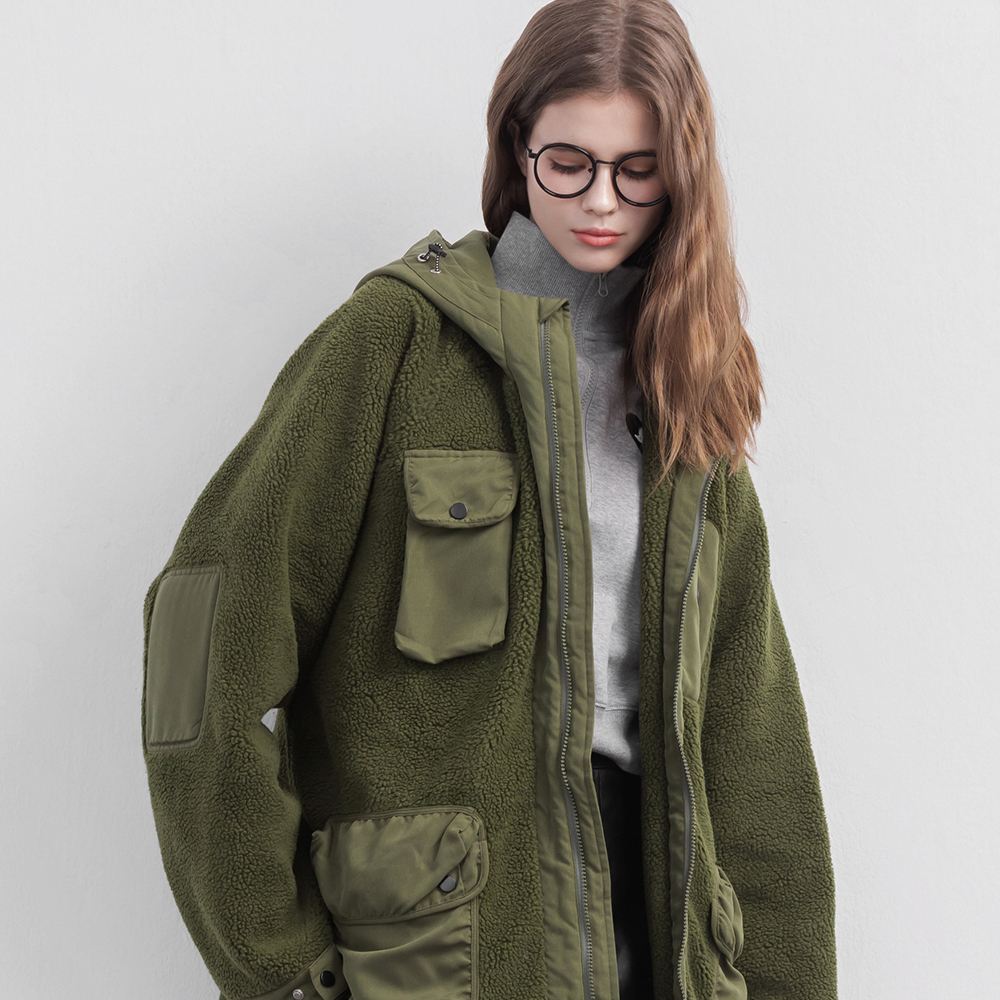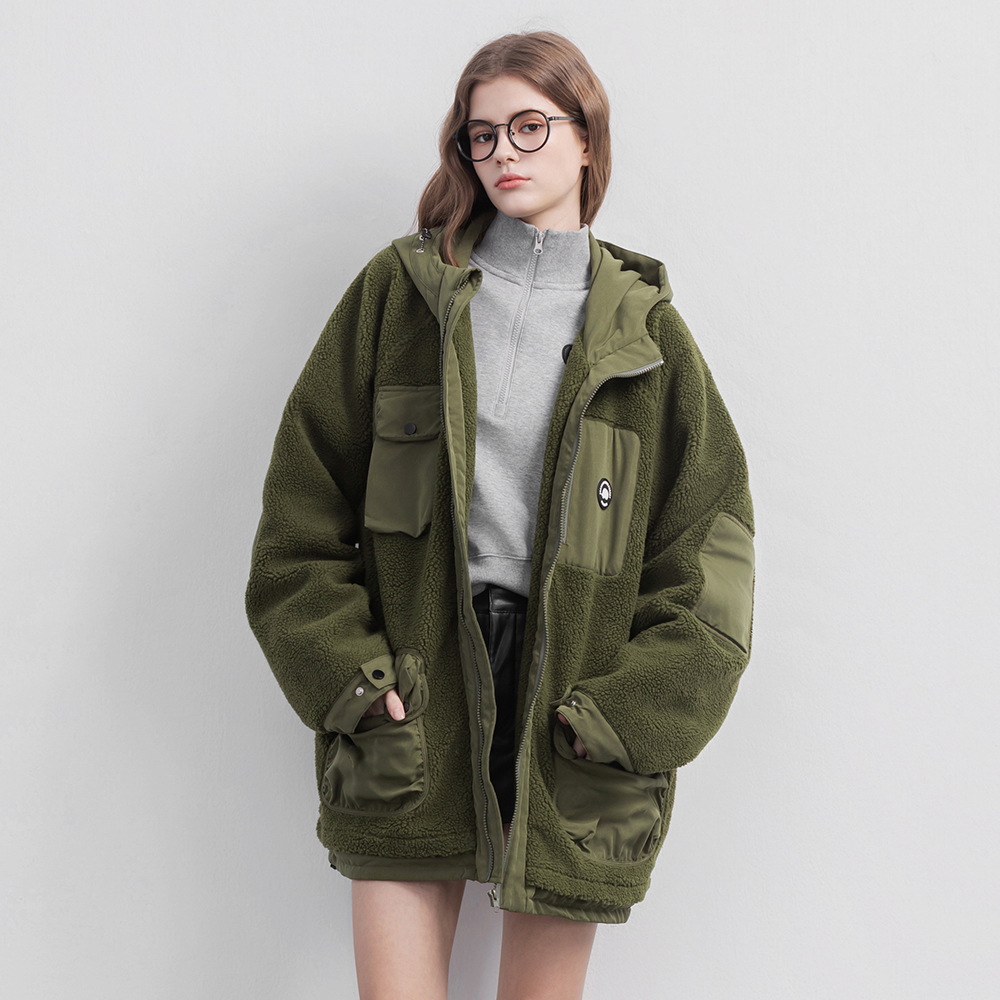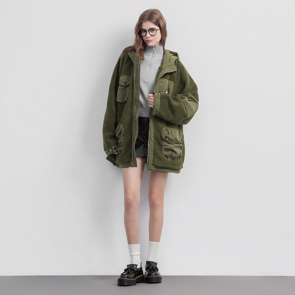 ▹同色系羊羔絨 × 質感登山布拼接,質感升級