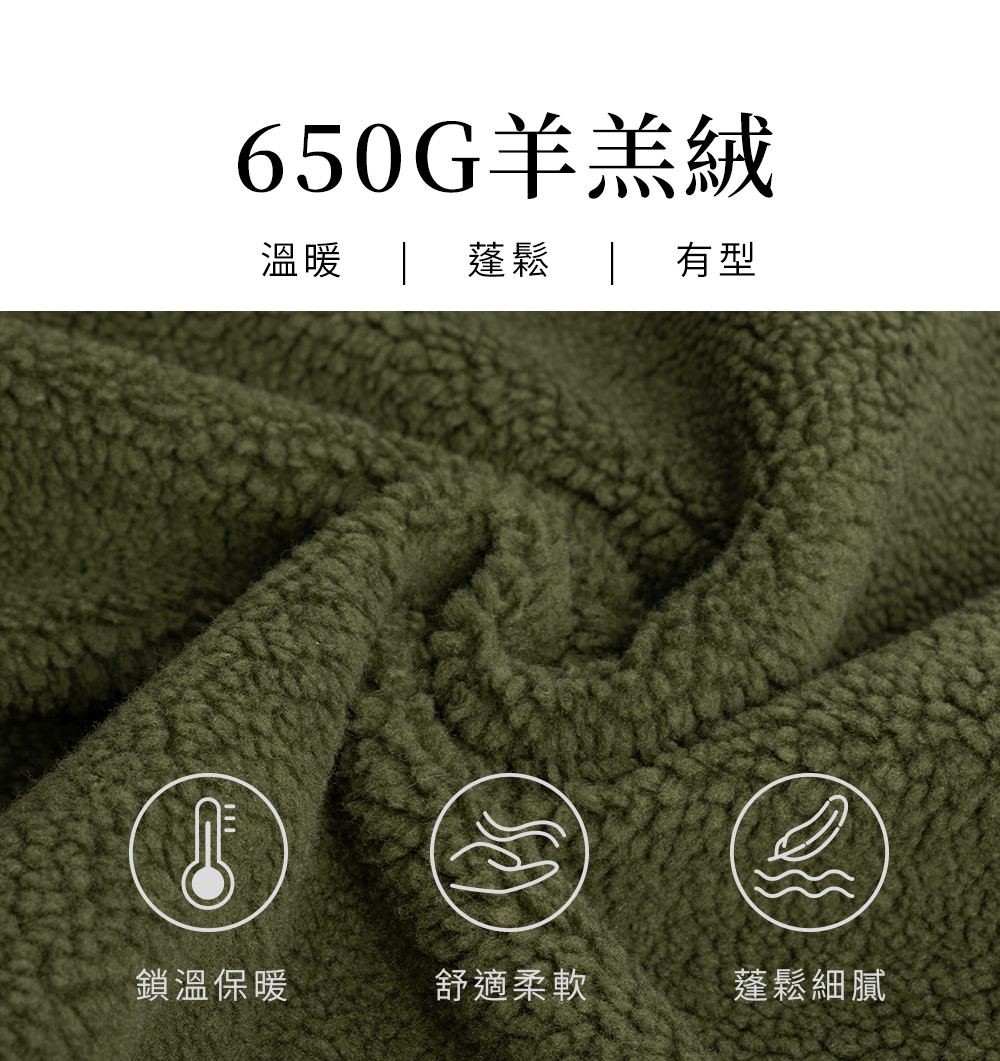 ▹650克羊羔絨,蓬鬆保暖