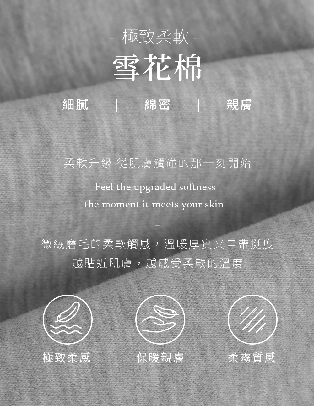 ▹ 採用9.7oz厚磅雪花棉,手感紮實不厚重