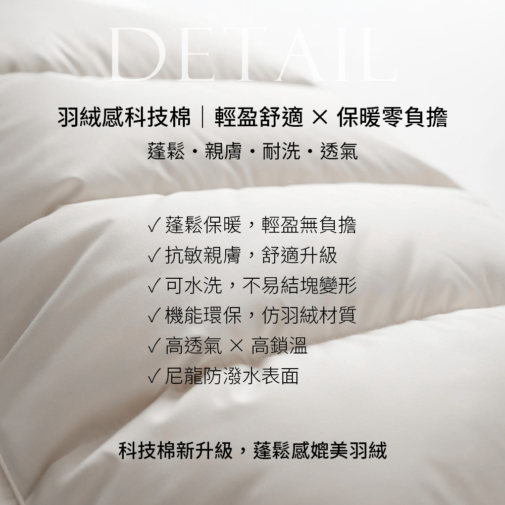 ▹ 蓬鬆度媲美天然羽絨,卻更耐洗快乾,不易結塊