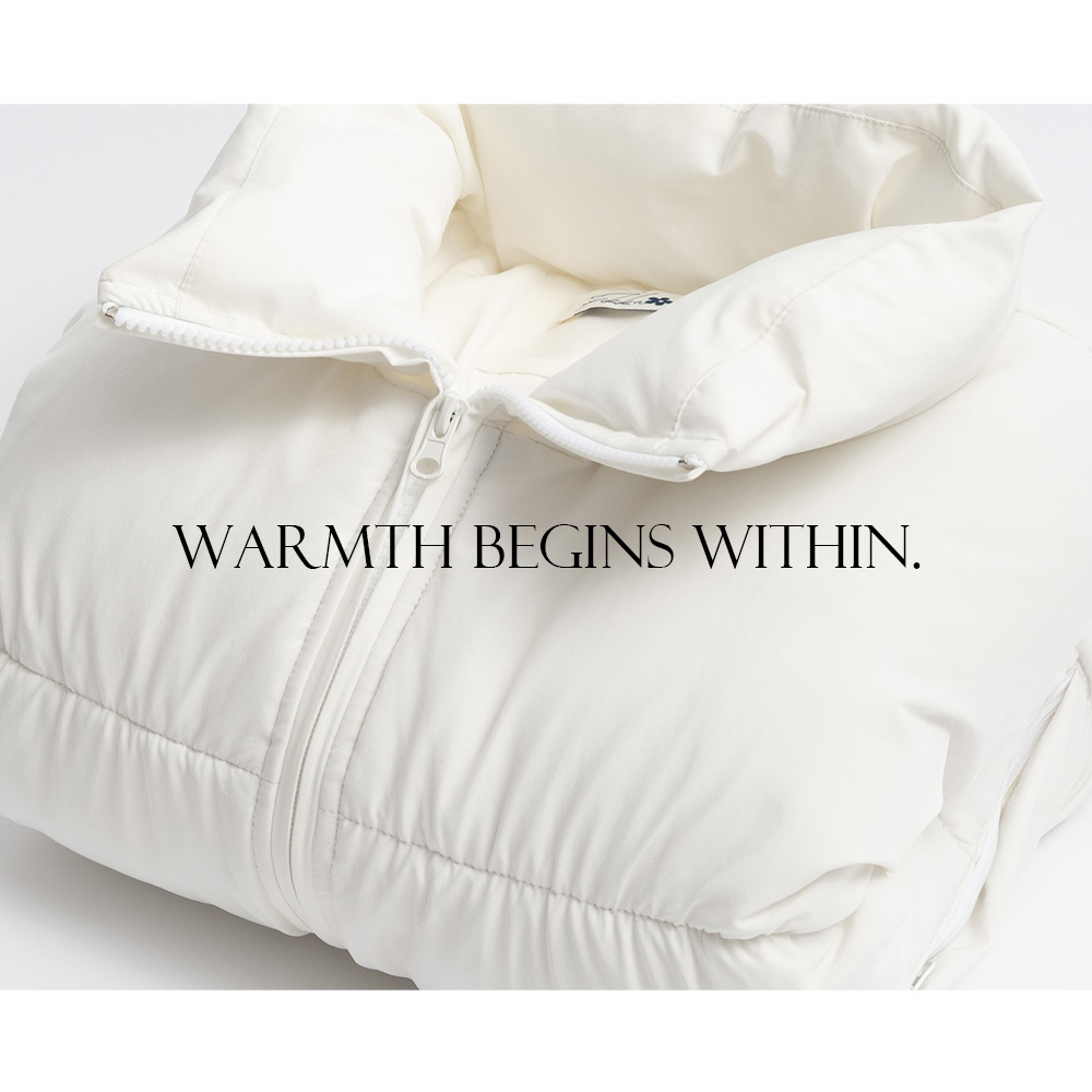 ▹ 高領設計,有效防風保暖,增添時尚層次感