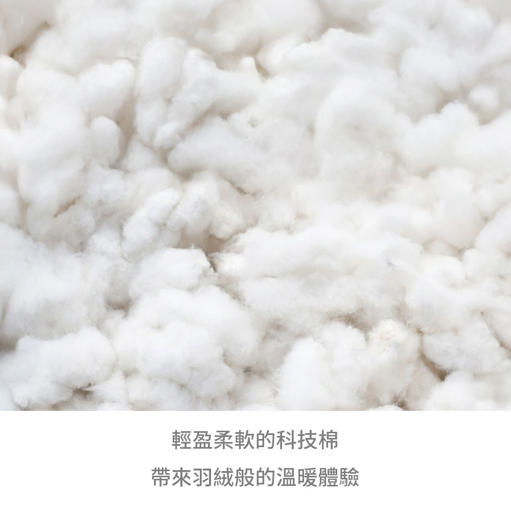 ▹ 採用高科技合成纖維填充,輕盈且保暖性佳