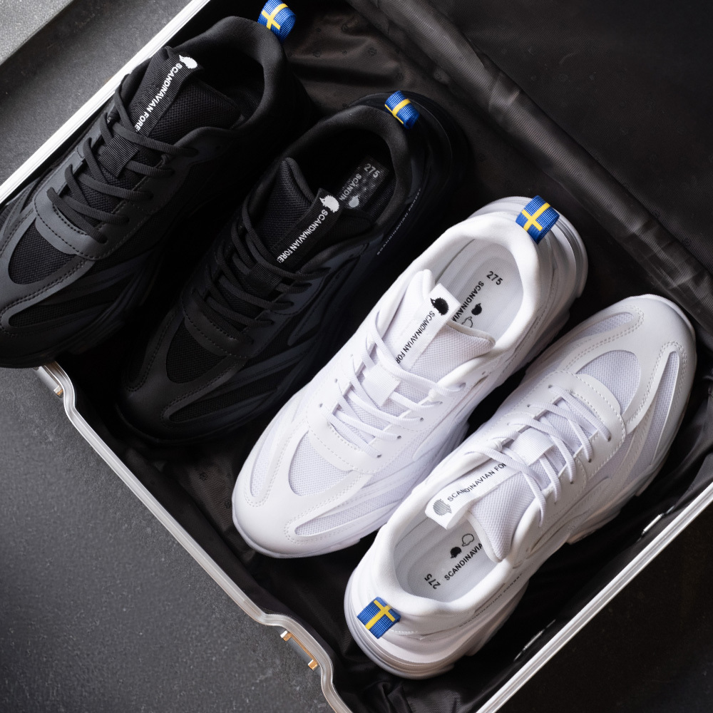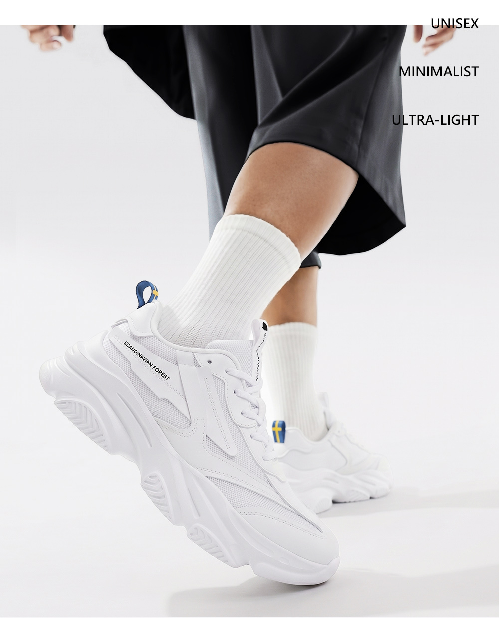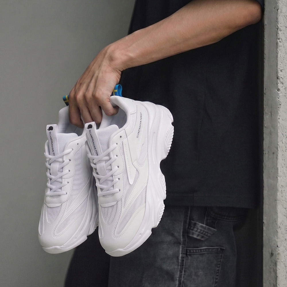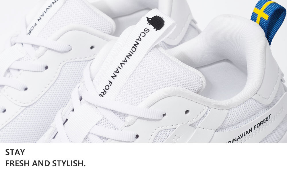 ▹全白鞋面、優雅弧線、北歐簡約LOGO設計