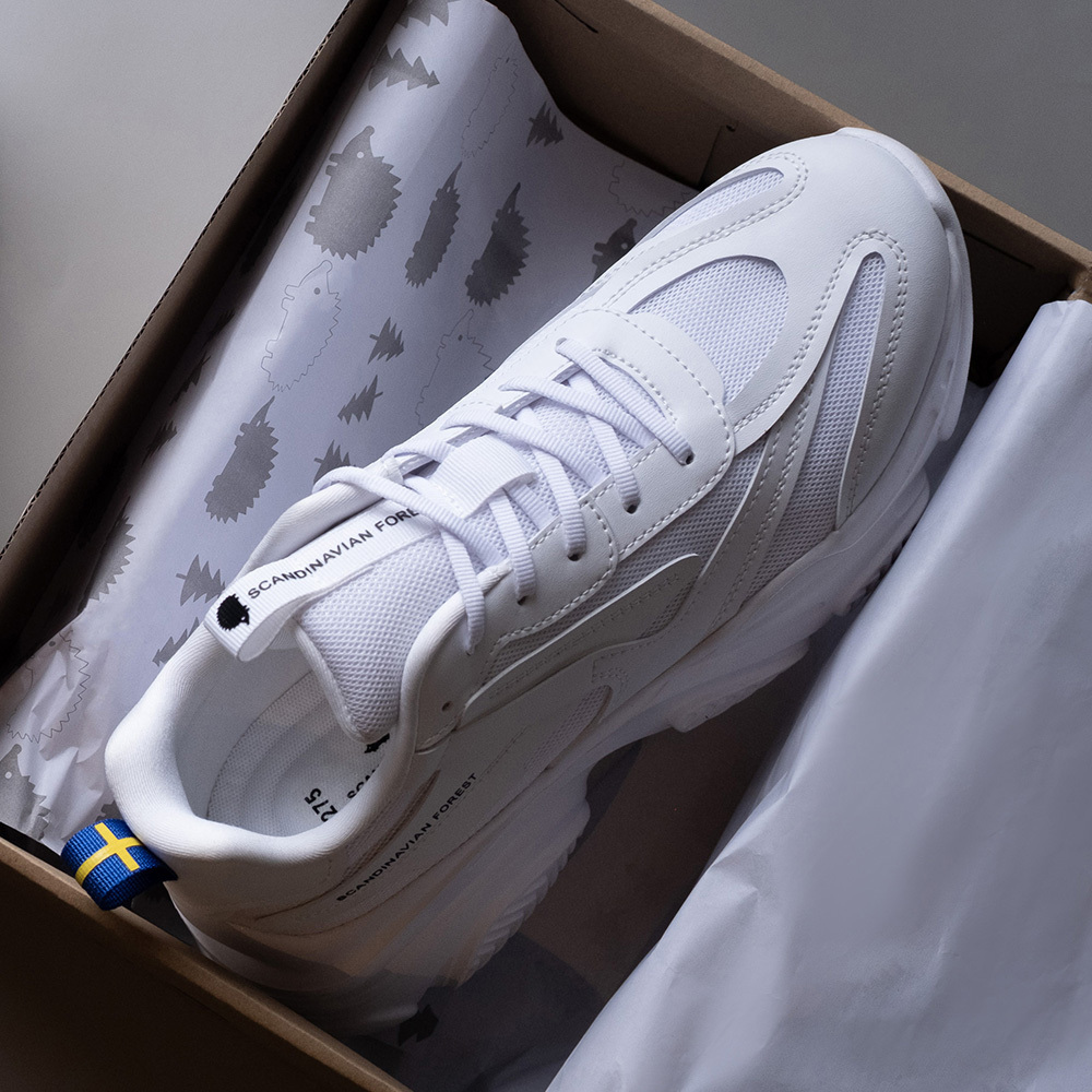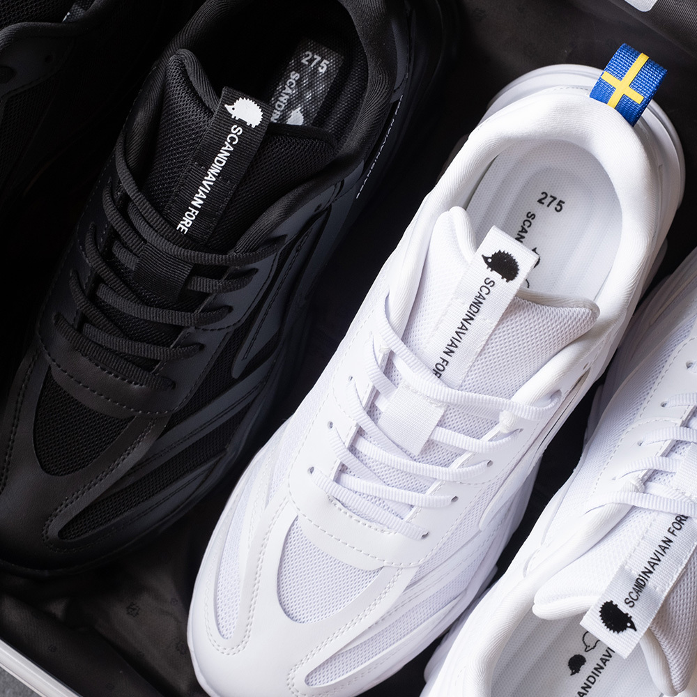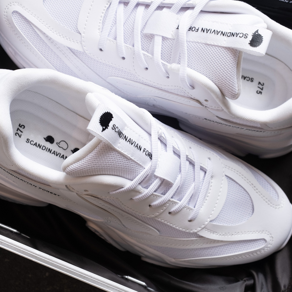 ▹全白鞋面、優雅弧線、北歐簡約LOGO設計