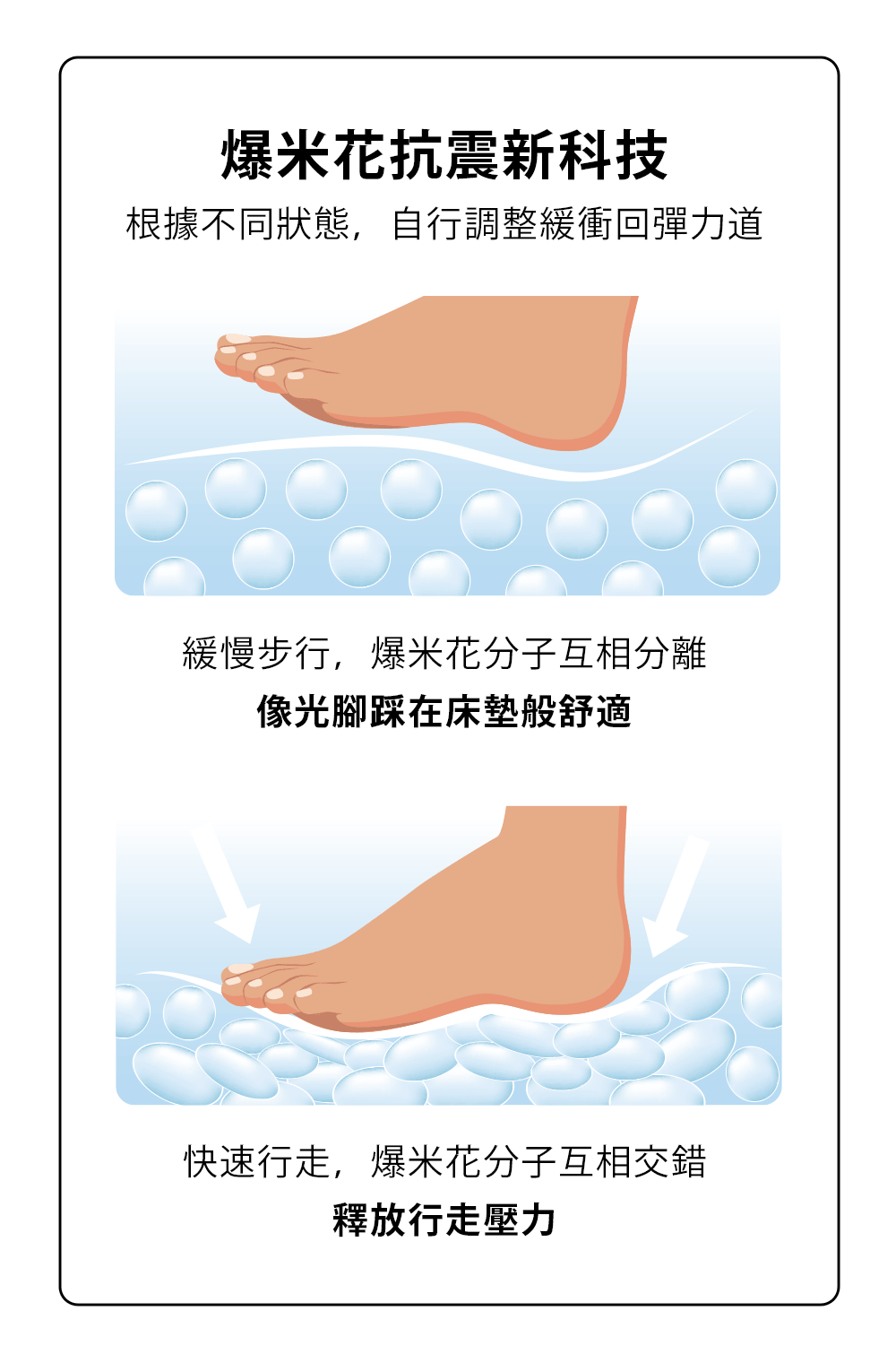 ▹高回彈、抗震、耐久穿,高彈力支撐
