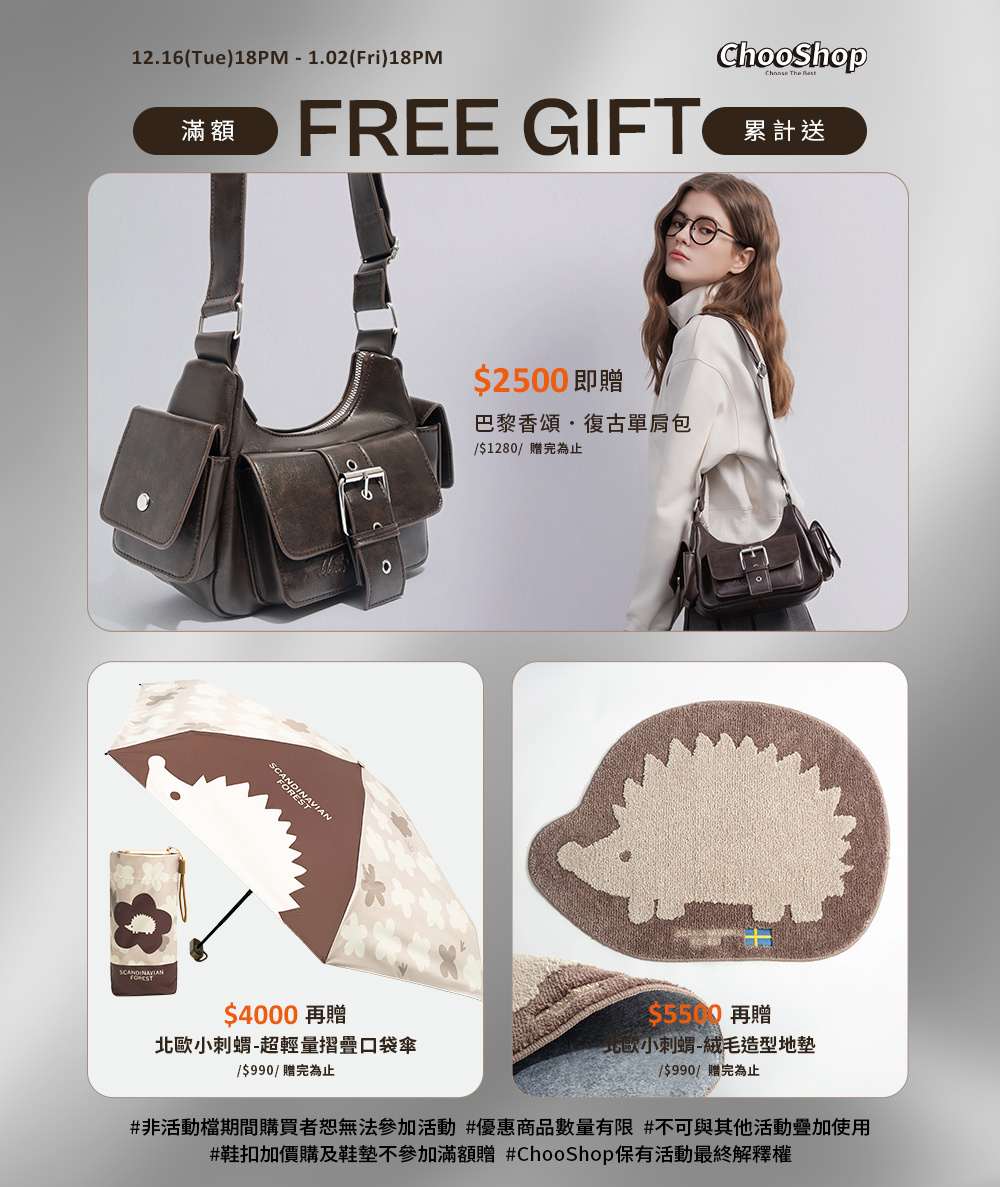 至2026-01-02T10:00:00.000+00:00截止 全店,聖誕購物好禮滿額🎄滿2500即送【巴黎香頌.復古單肩包】 (不符合資格者將不出貨)