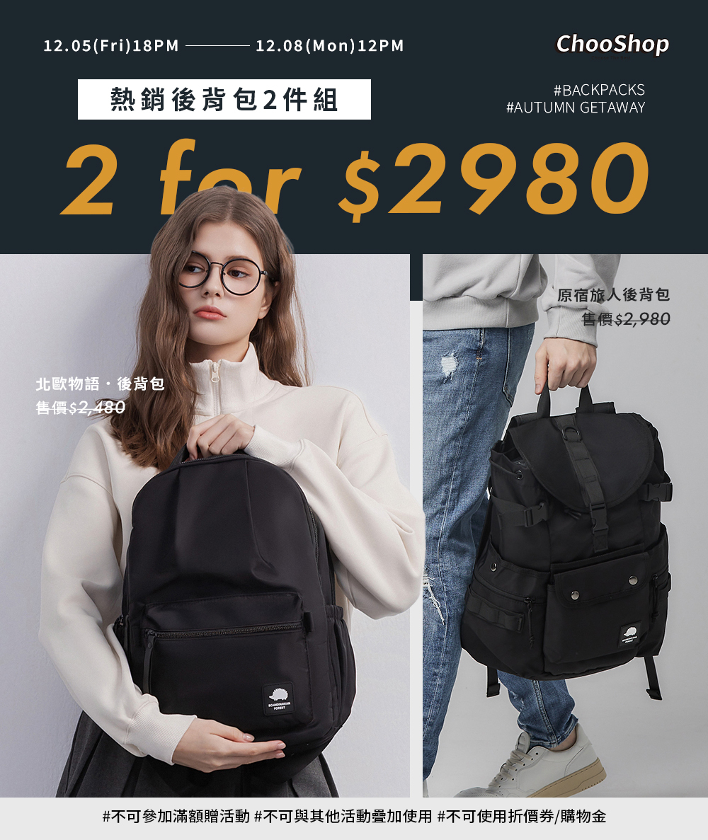 至2025-12-08T04:00:00.000+00:00截止 指定商品,周末限定⚡包+鞋/包 $2980 (不參加全館滿額贈)