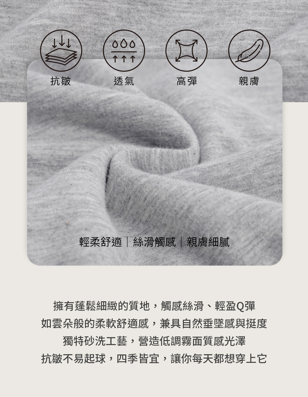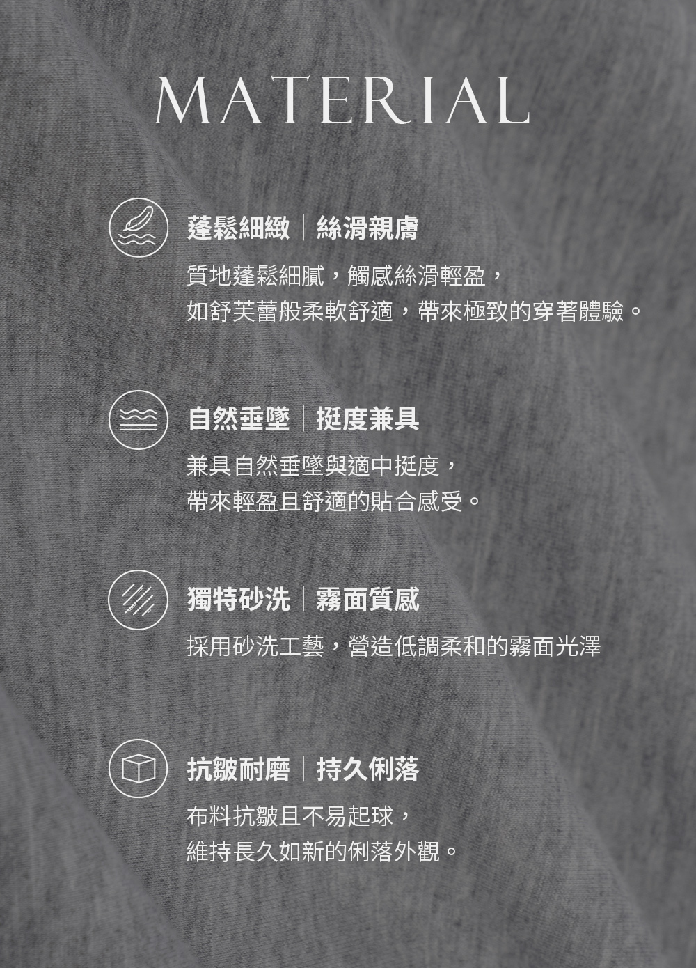 ▹布料具自然垂墜與挺度,兼具抗皺與耐磨,不易起球