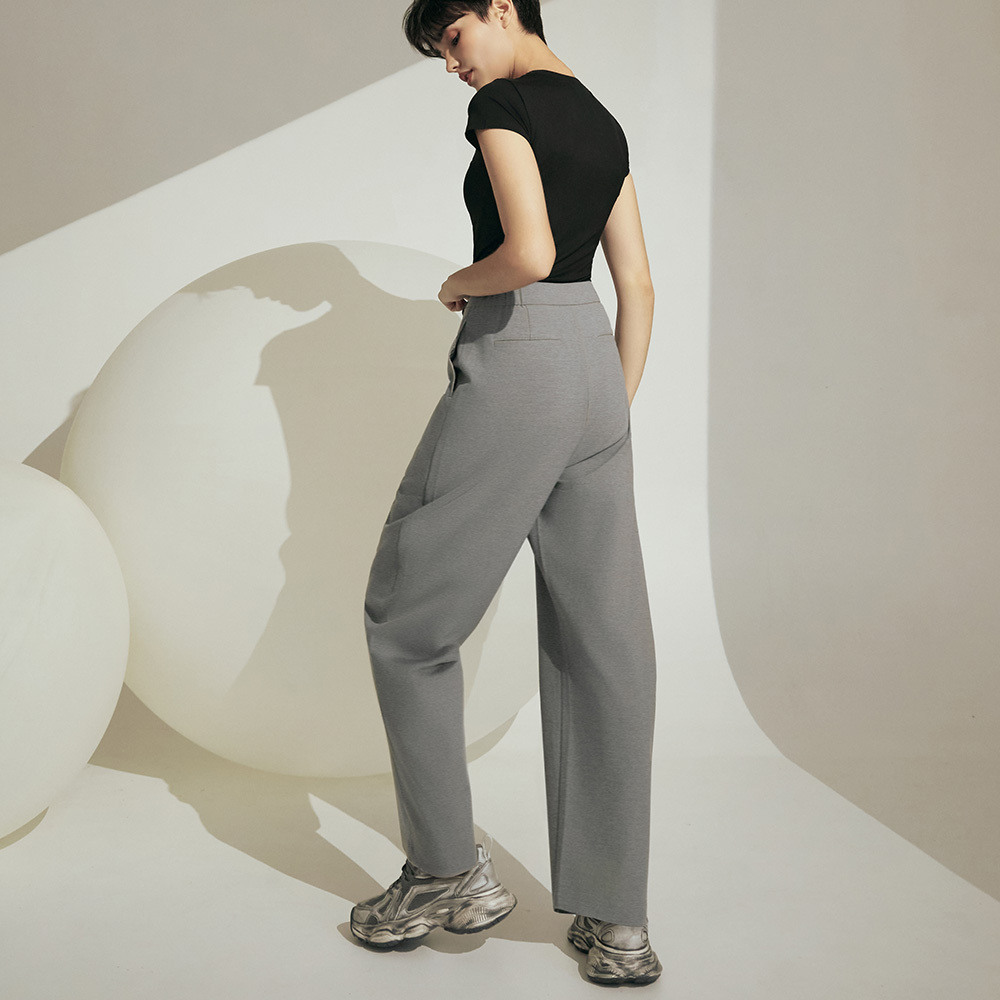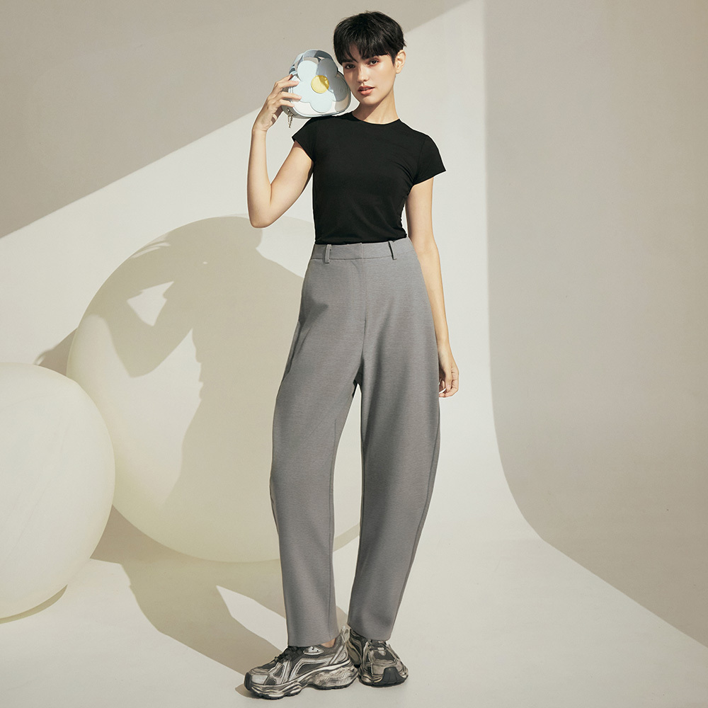 ▹彎刀剪裁弧形褲型,修飾腿型,勾勒自然弧線