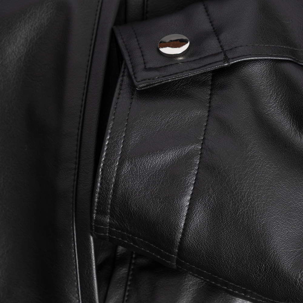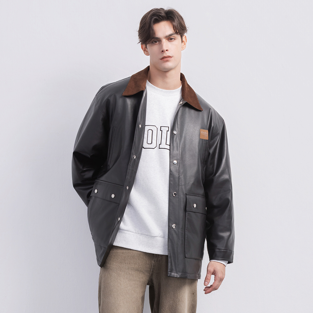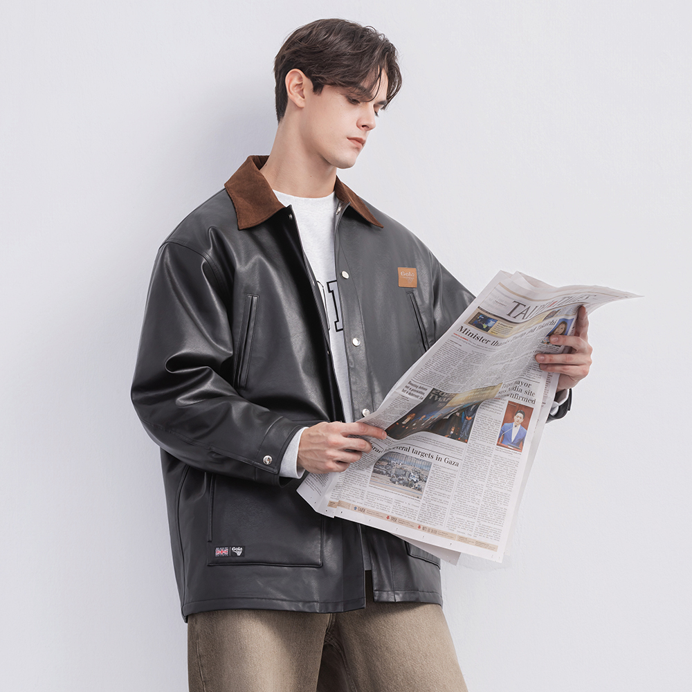 這款中性翻領皮外套以俐落翻領結構搭配率性的皮革質感,呈現帥氣又帶點復古調性的時尚風格。版型適中不貼身,兼具造型度與舒適度。細緻車線與金屬五金點綴增添質感,無論搭配簡約T恤或厚實針織都能輕鬆駕馭,是秋冬衣櫃中提升存在感的關鍵單品。