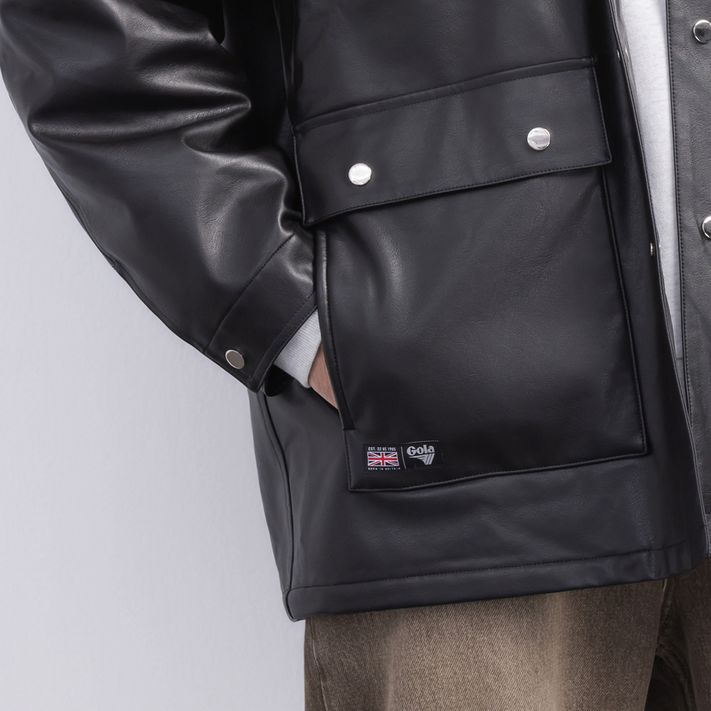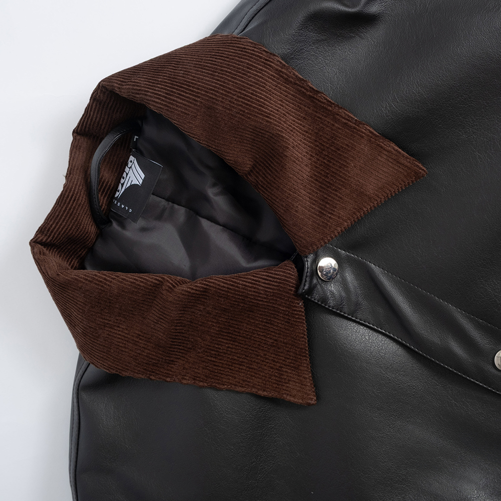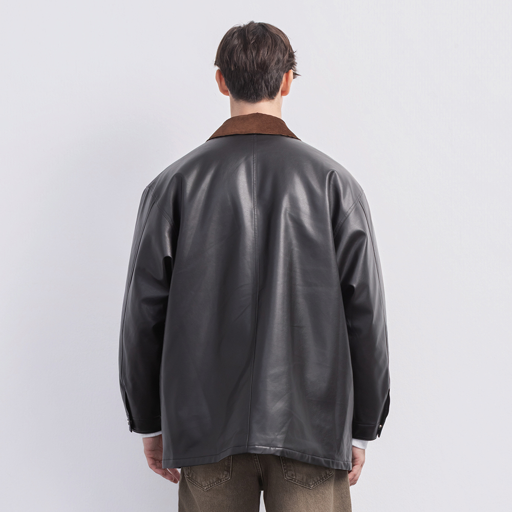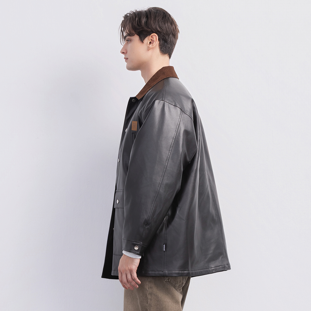 這款中性翻領皮外套以俐落翻領結構搭配率性的皮革質感,呈現帥氣又帶點復古調性的時尚風格。版型適中不貼身,兼具造型度與舒適度。細緻車線與金屬五金點綴增添質感,無論搭配簡約T恤或厚實針織都能輕鬆駕馭,是秋冬衣櫃中提升存在感的關鍵單品。