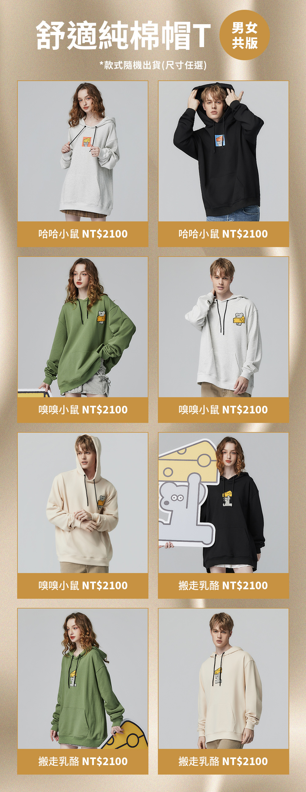 ANDY THE MOUSE【帽T 】or【大學T】隨機1件 (尺寸可選/款式隨機)