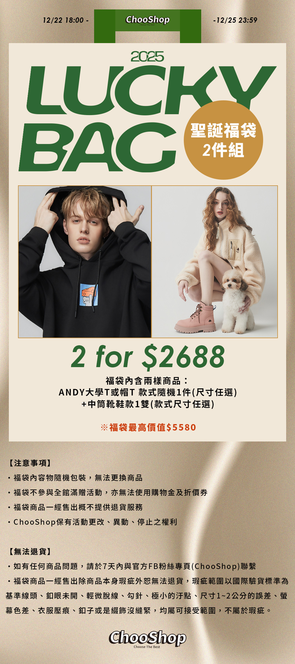 至2026-01-02T10:00:00.000+00:00截止 全店,聖誕購物好禮滿額🎄滿2500即送【巴黎香頌.復古單肩包】 (不符合資格者將不出貨)