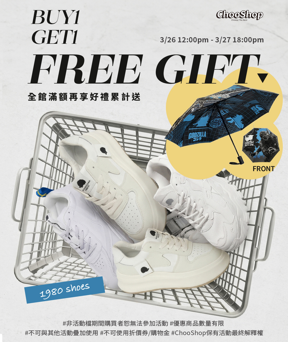 限時快閃⚡刺蝟老爹鞋送哥吉拉傘!滿額再送好禮🎁
