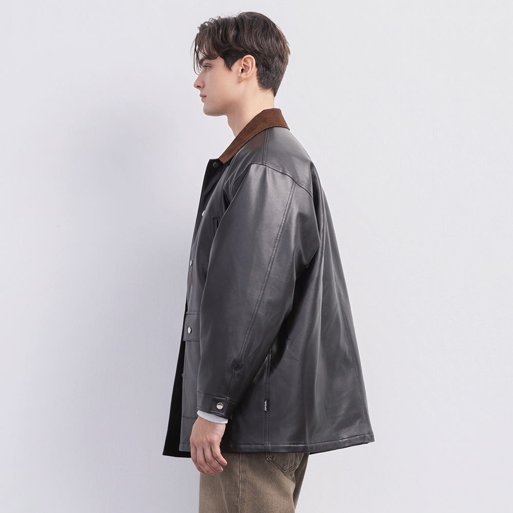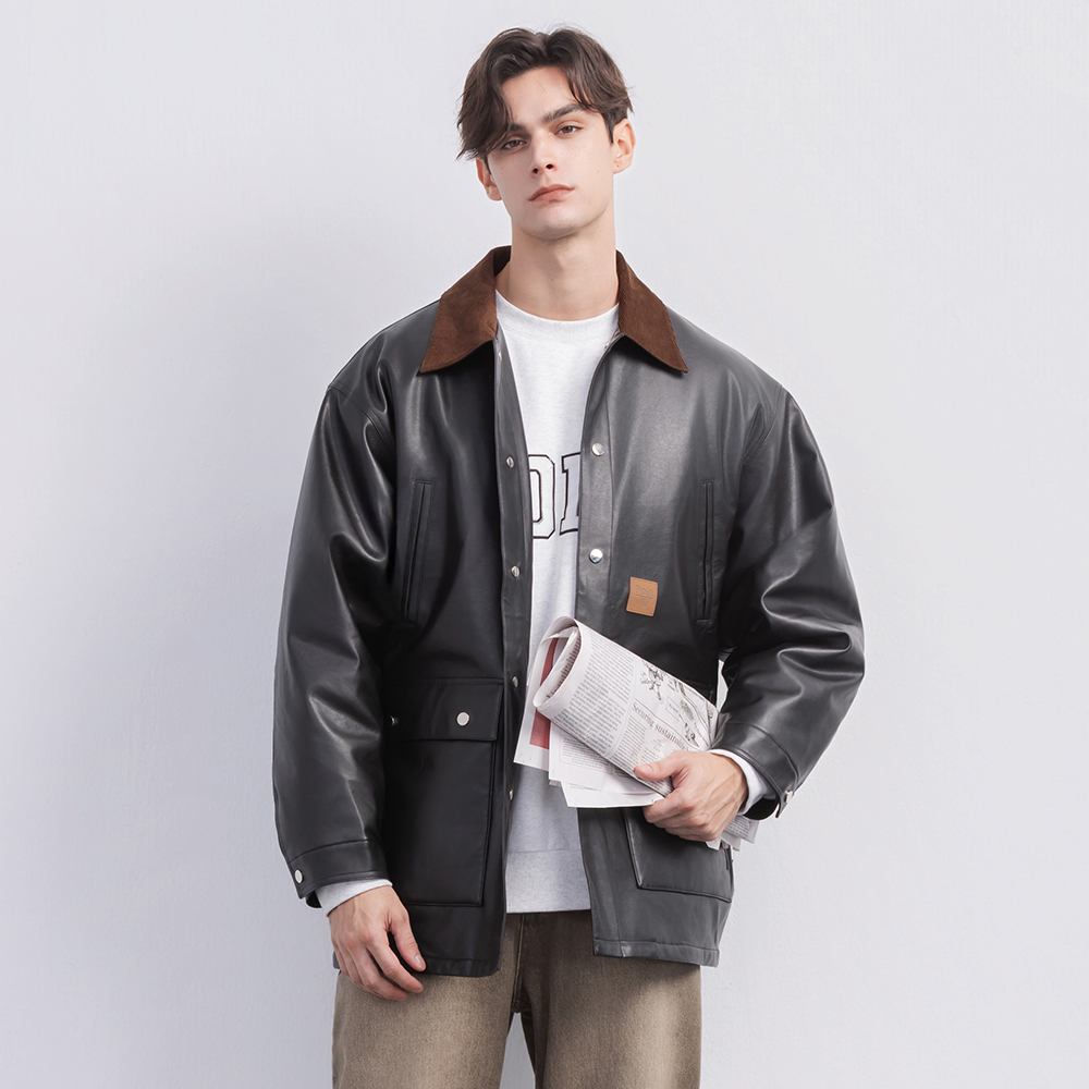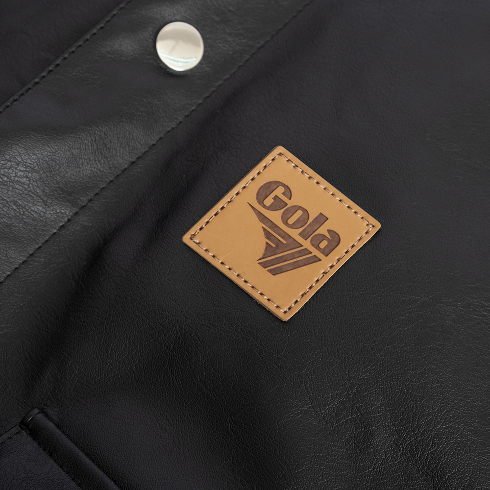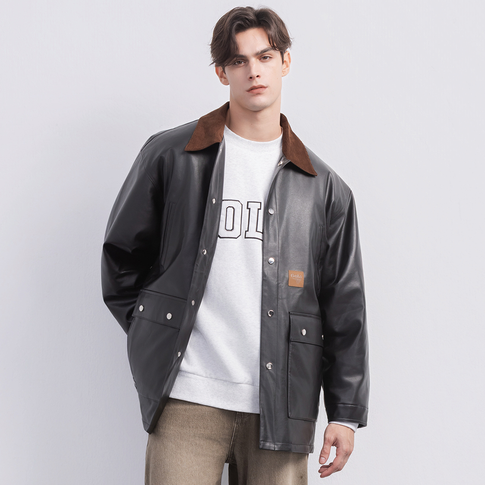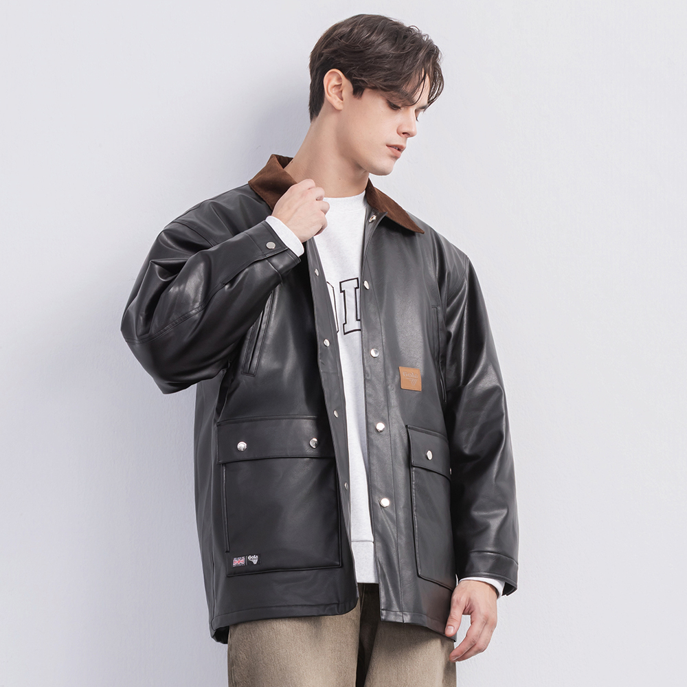 (現貨)GOLA-翻領配色皮外套-黑色 (男女共穿)