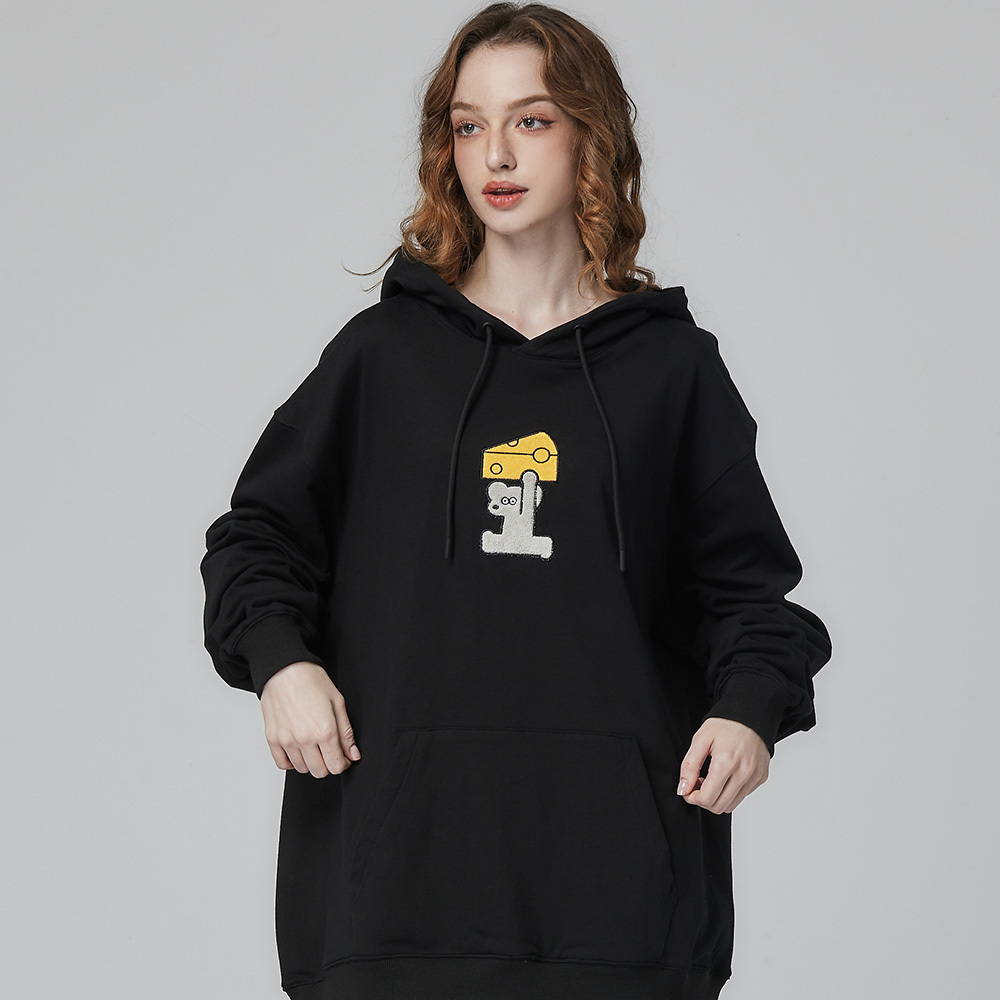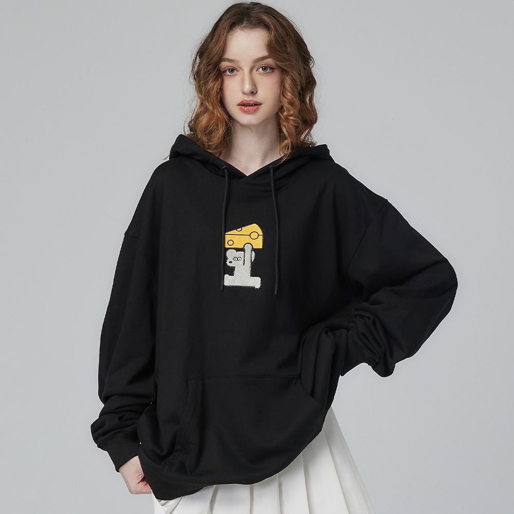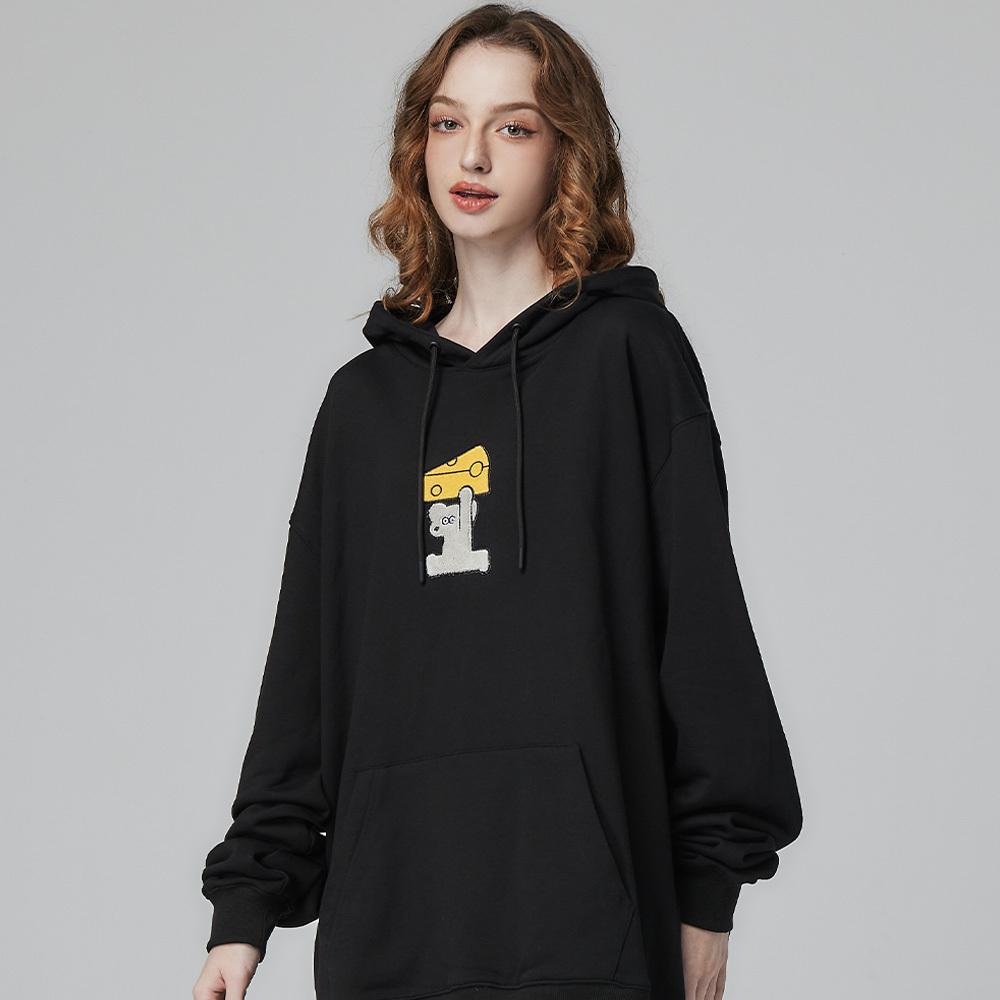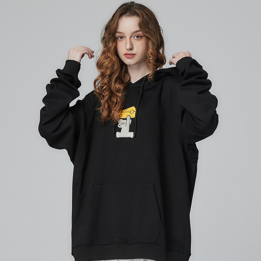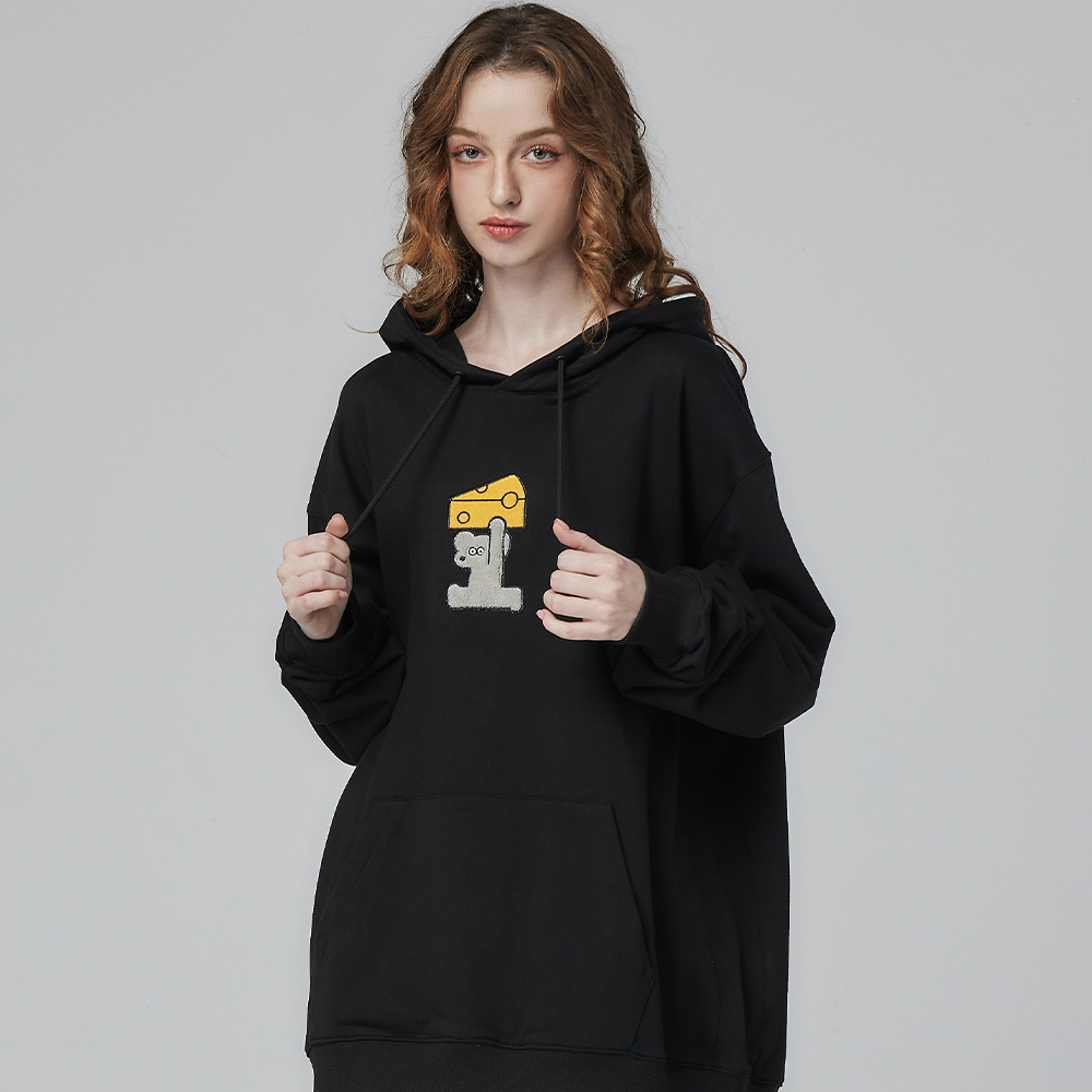 (現貨)ANDY THE MOUSE安迪老鼠-舒適純棉帽T(搬走乳酪)-黑色