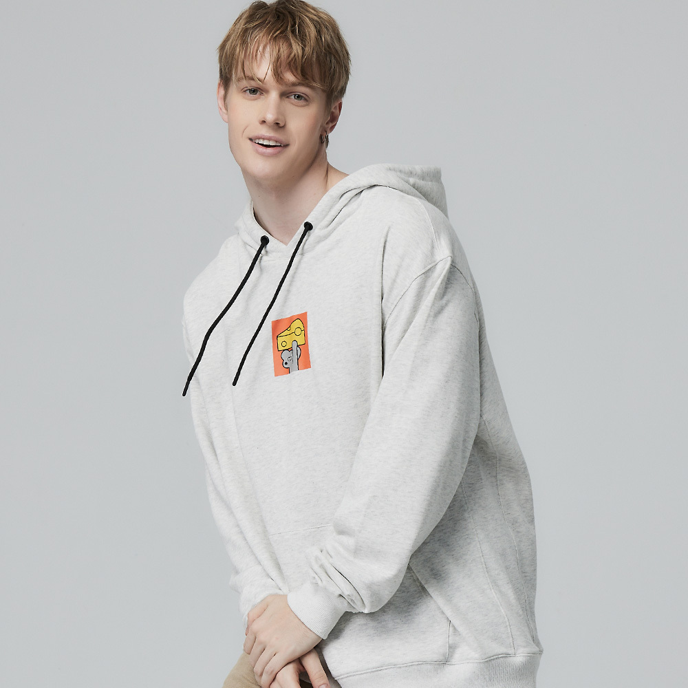 (現貨)ANDY THE MOUSE安迪老鼠-舒適純棉帽T(哈哈小鼠)-麻灰