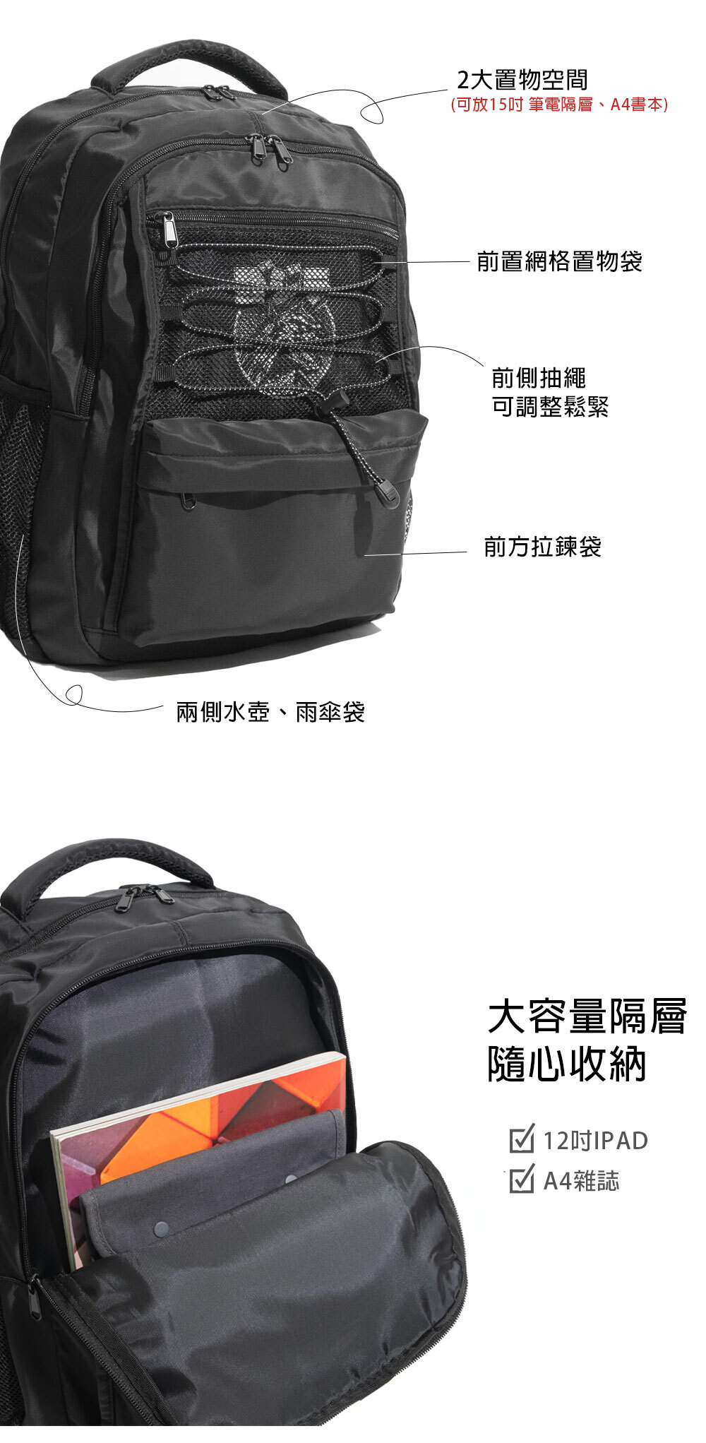 ▹加強網袋收納層、行李箱掛袋、兩側網格袋隨手放