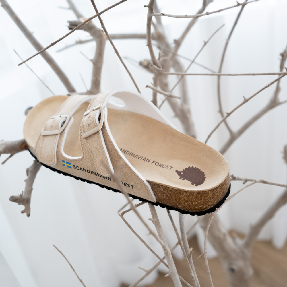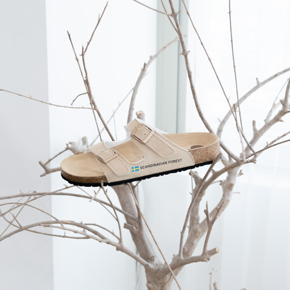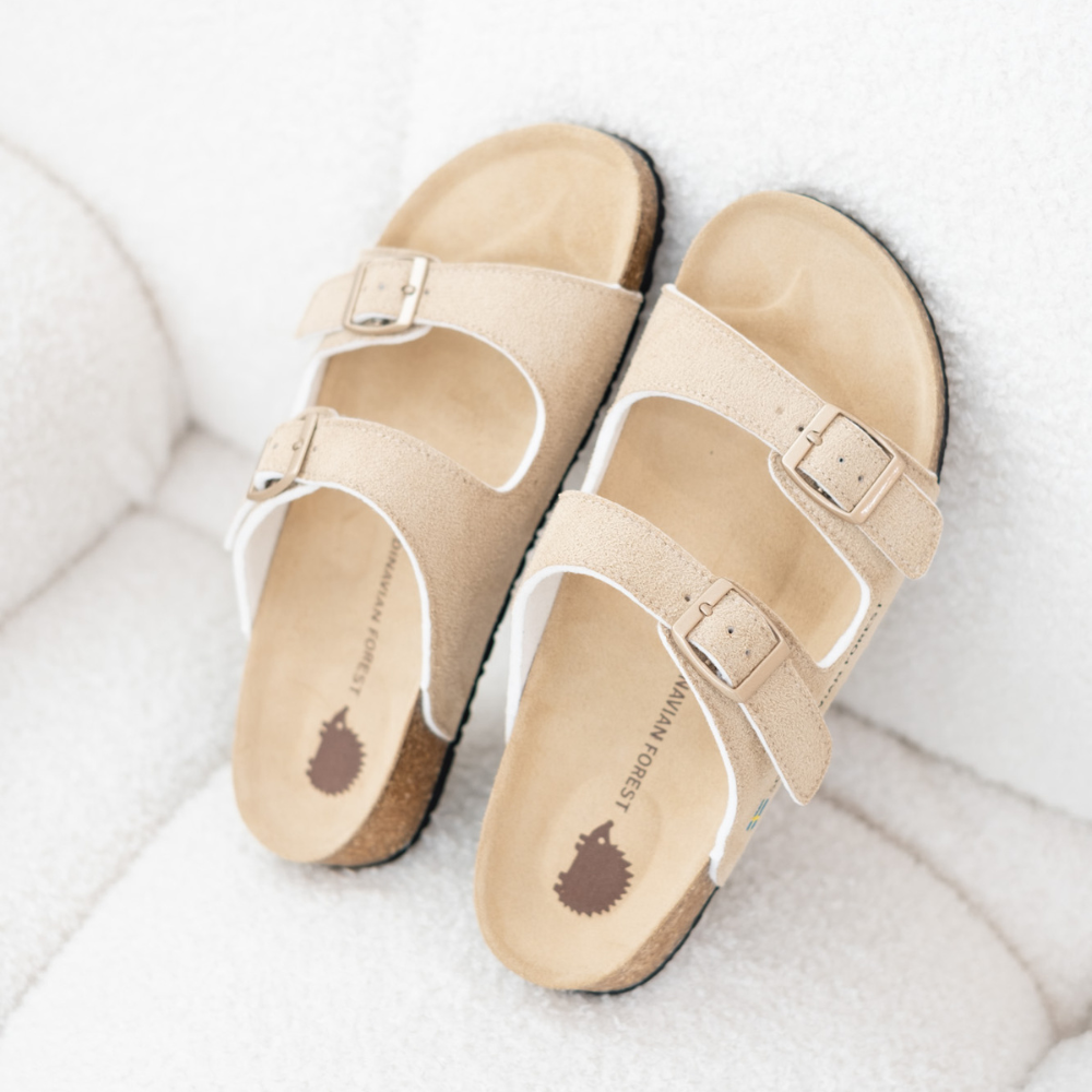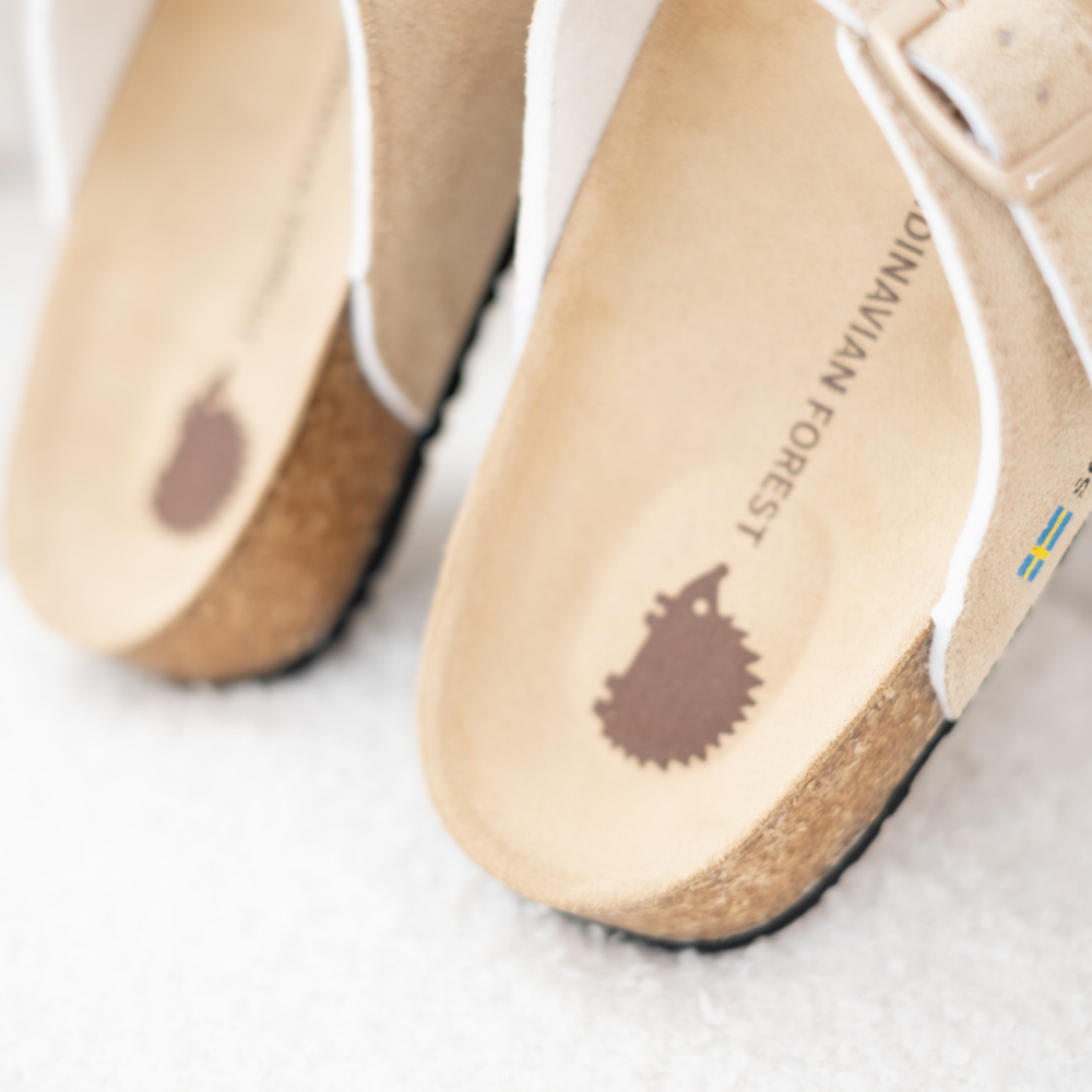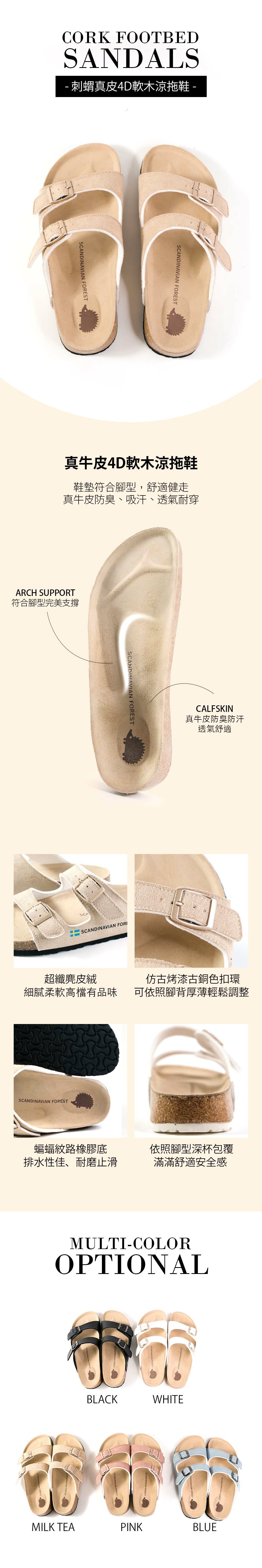 (現貨)SCANDINAVIAN FOREST-刺蝟真皮足弓4D軟木雙帶拖鞋-卡其(女)