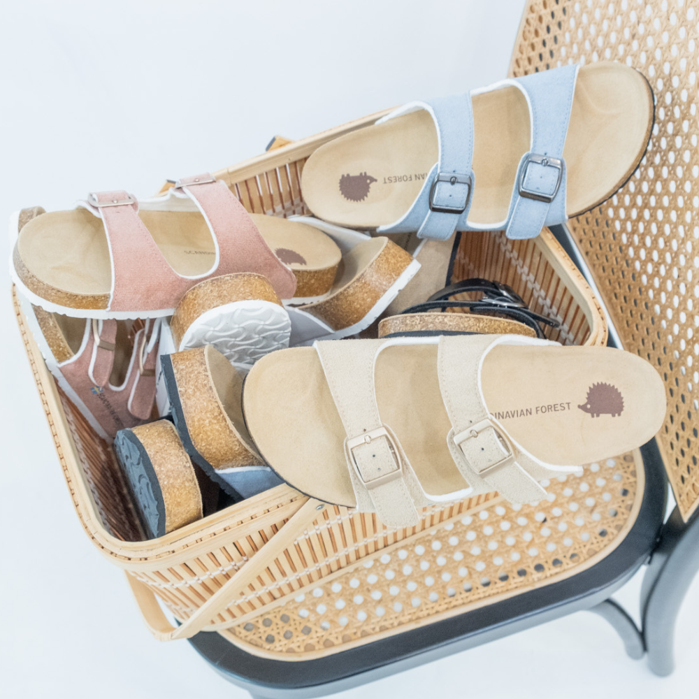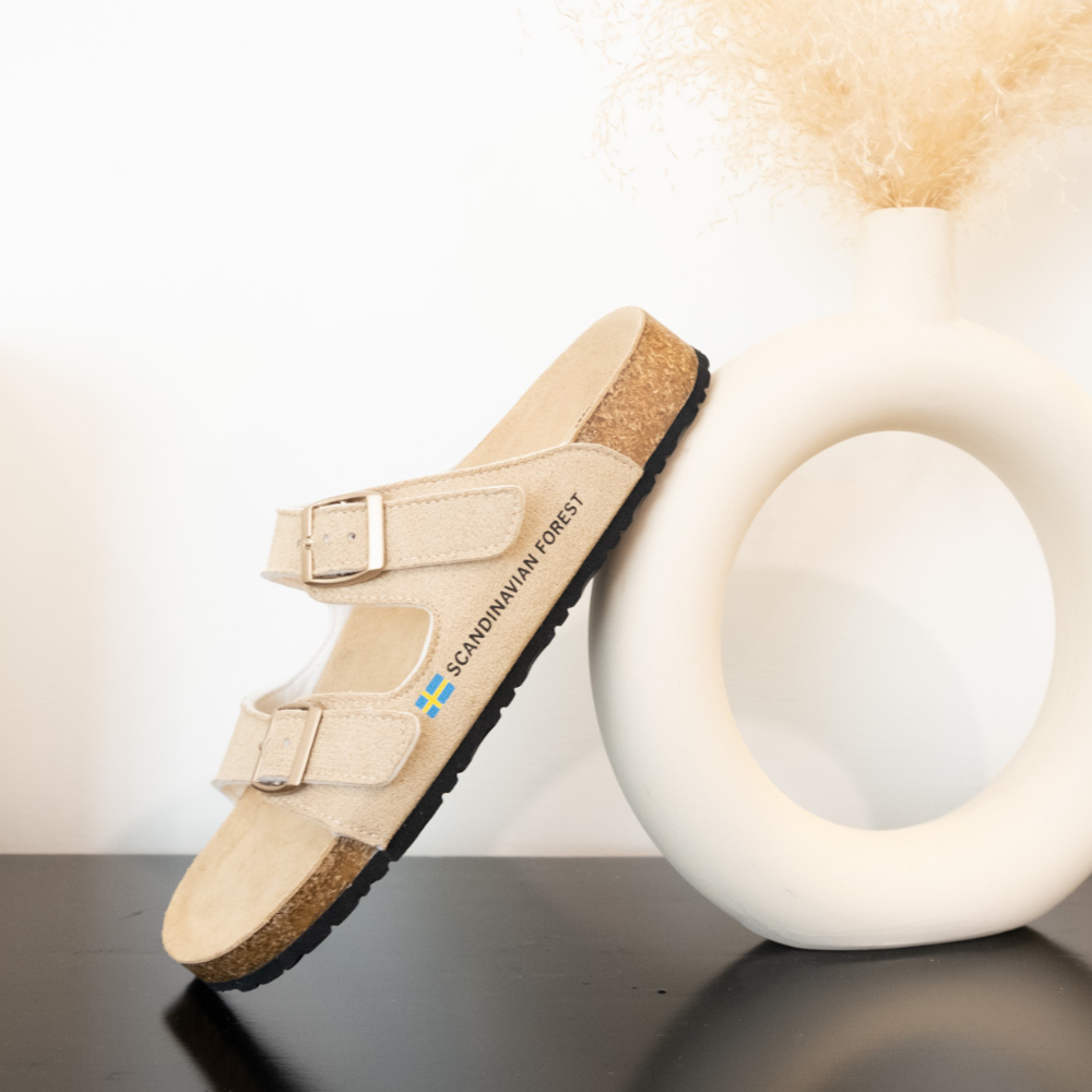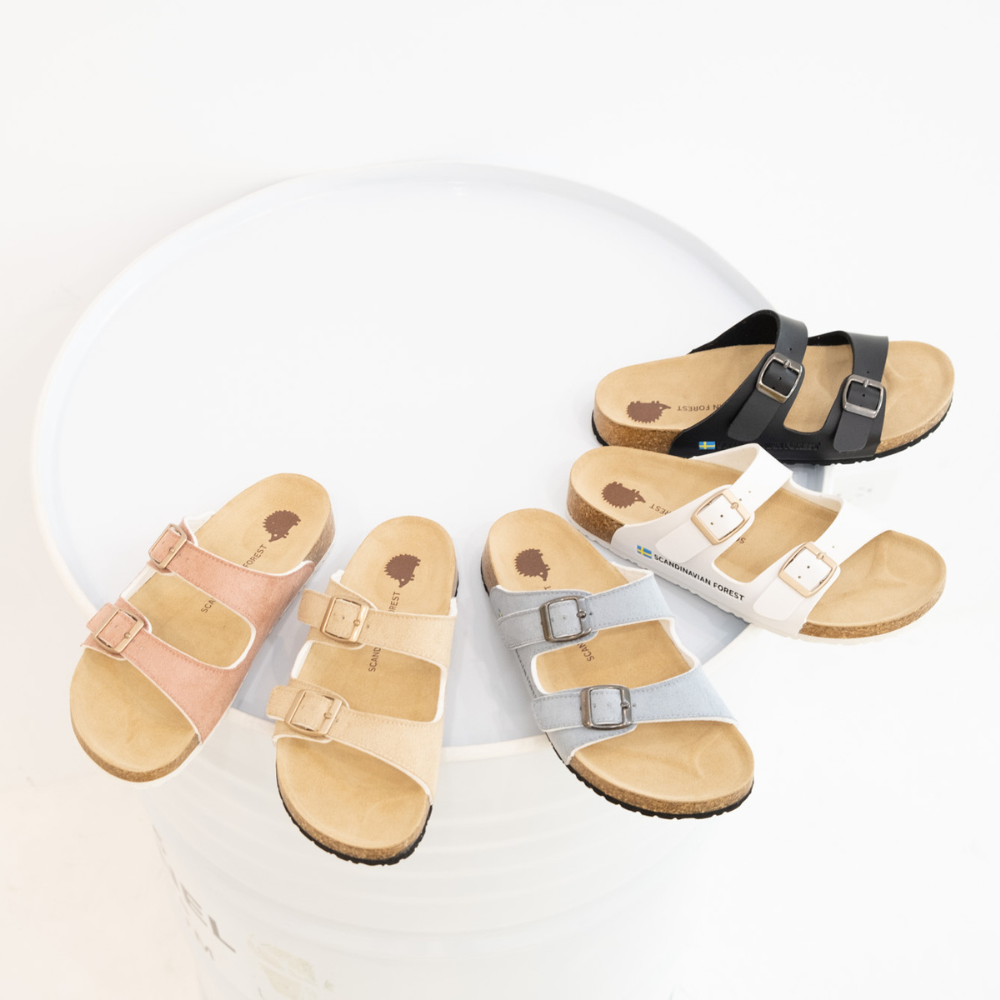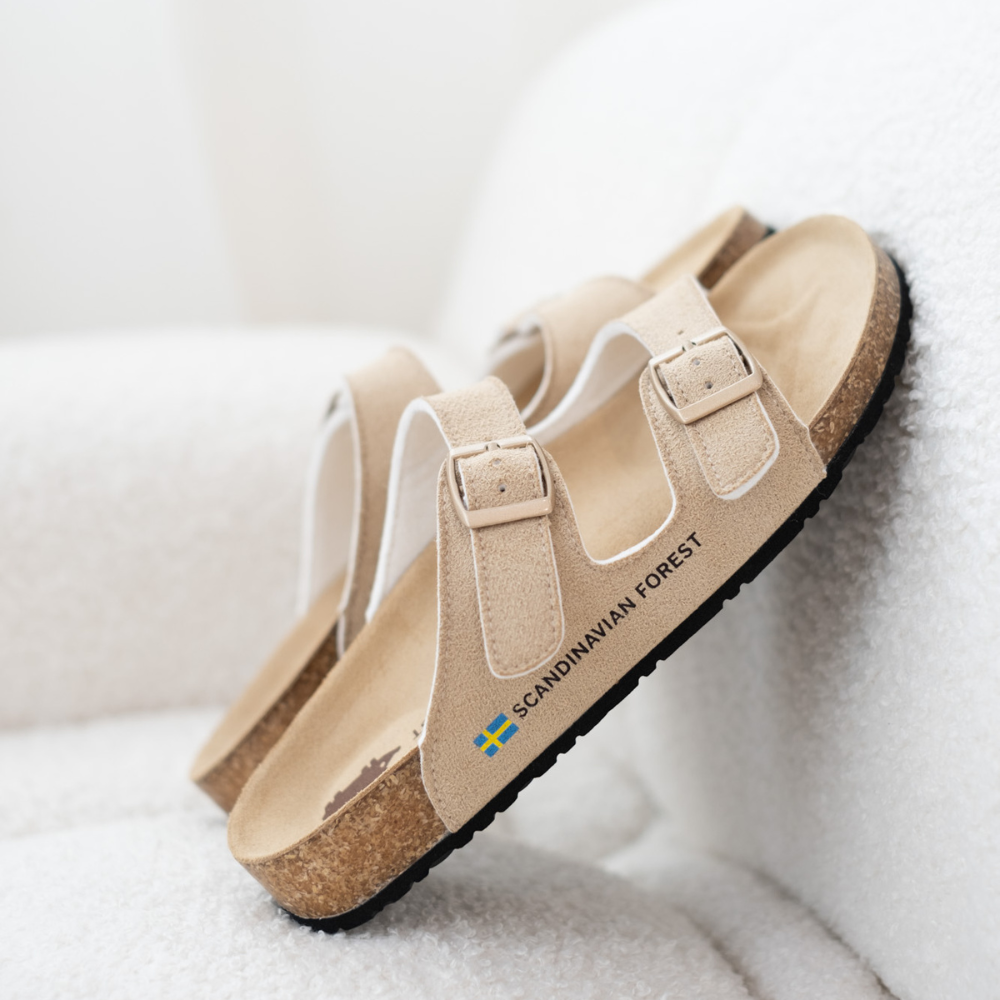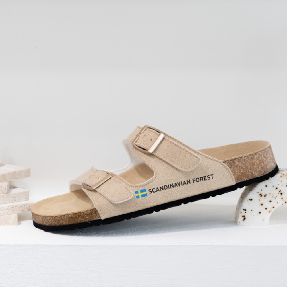 (現貨)SCANDINAVIAN FOREST-刺蝟真皮足弓4D軟木雙帶拖鞋-卡其(女)