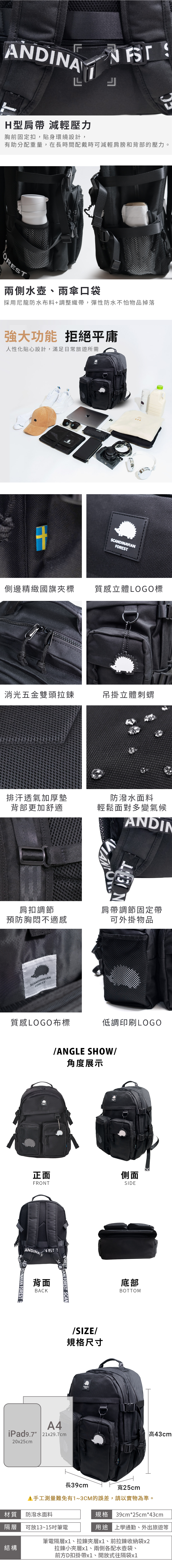 ▸可放置:15吋電腦、A4書籍、A5筆記本、長夾、長袖衣物、