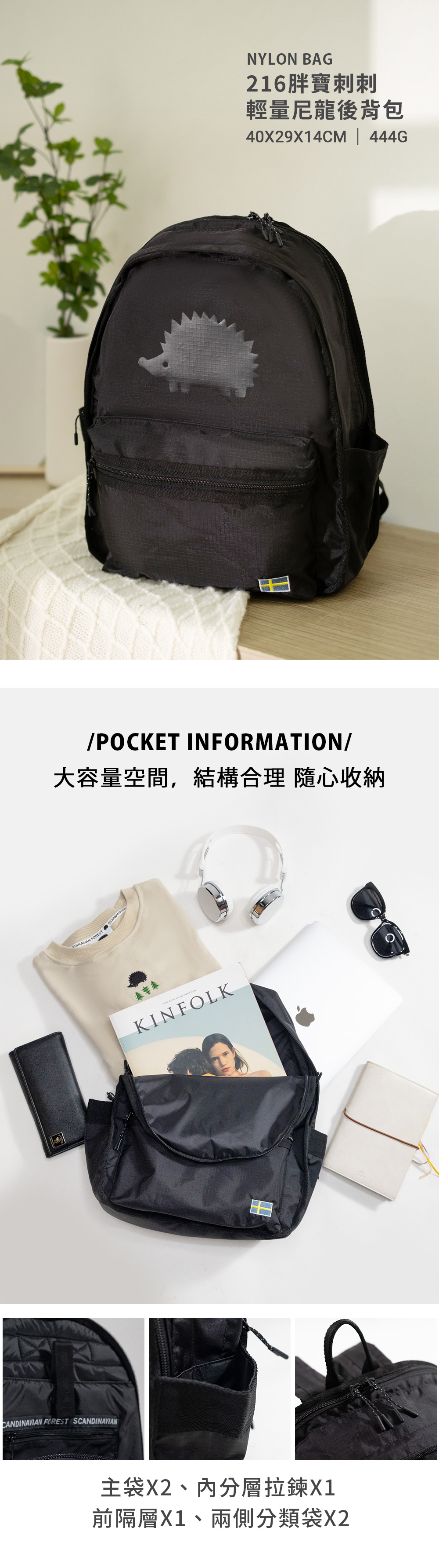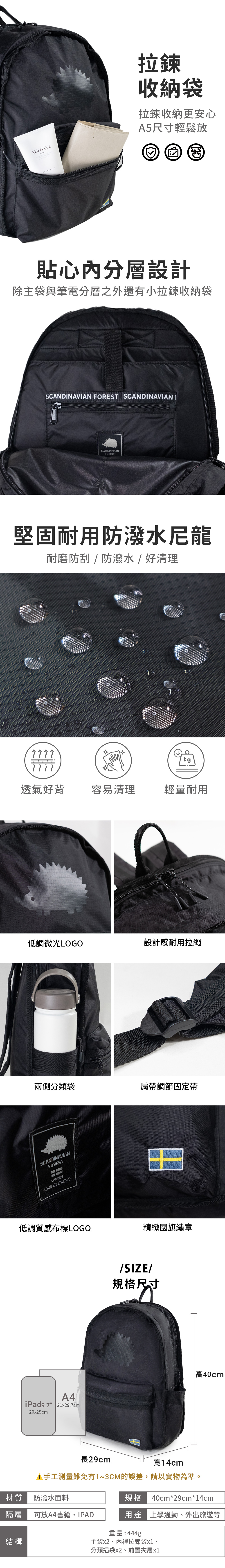 ▸可放置:15吋筆電、A4書籍、A5筆記本、長夾、