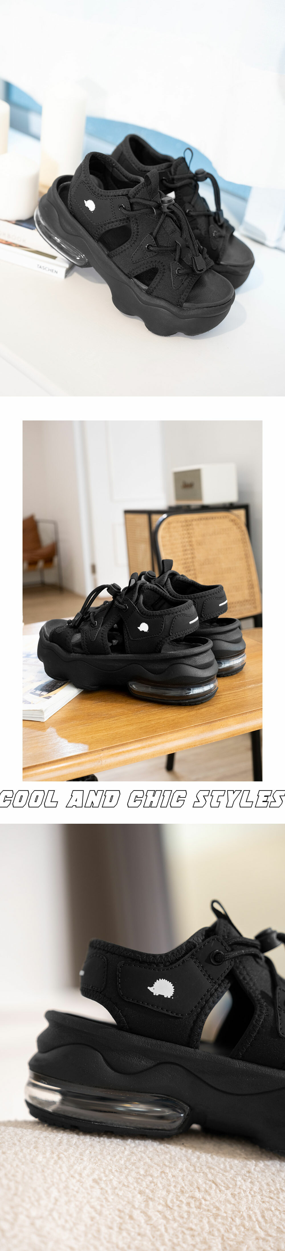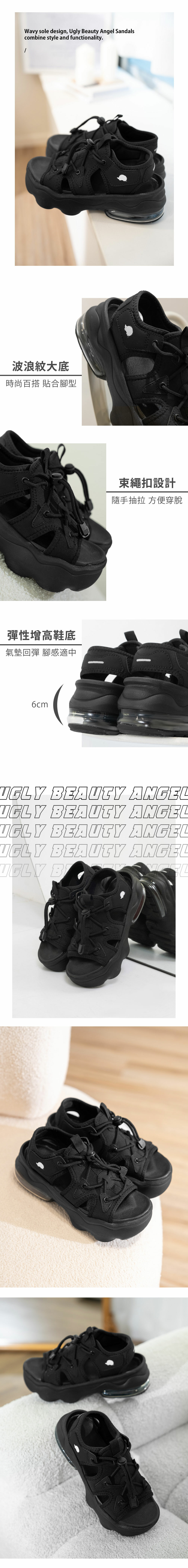 (現貨)SCANDINAVIAN FOREST北歐小刺蝟-怪美天使.Air氣墊增高涼鞋-經典黑