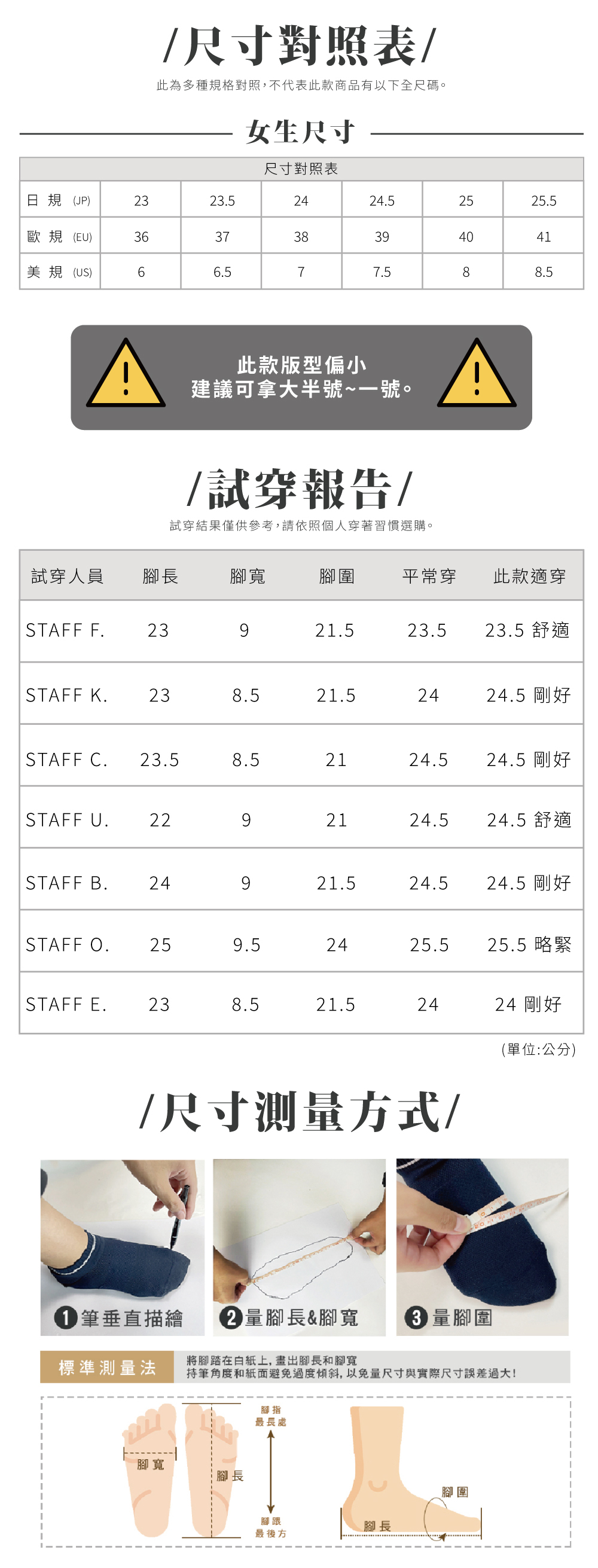 ※此款版型偏小,建議選大半號~一號尺寸。