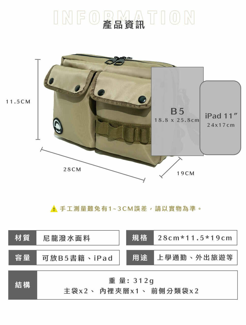 ▸可放置 : 11吋iPAD Pro、B5筆記本、長夾、護照、掌上型電玩