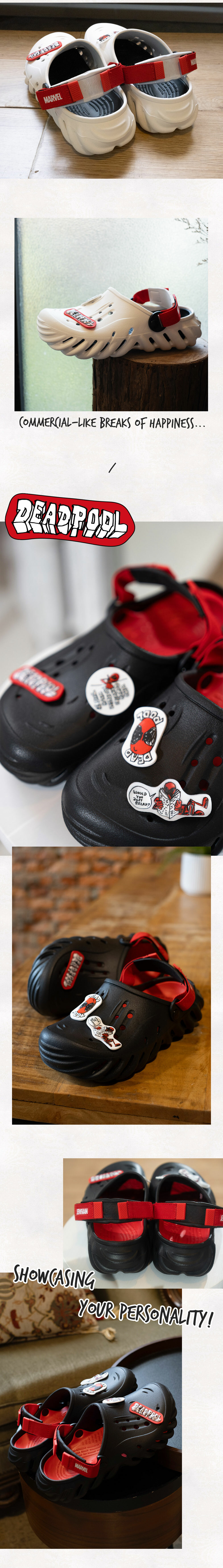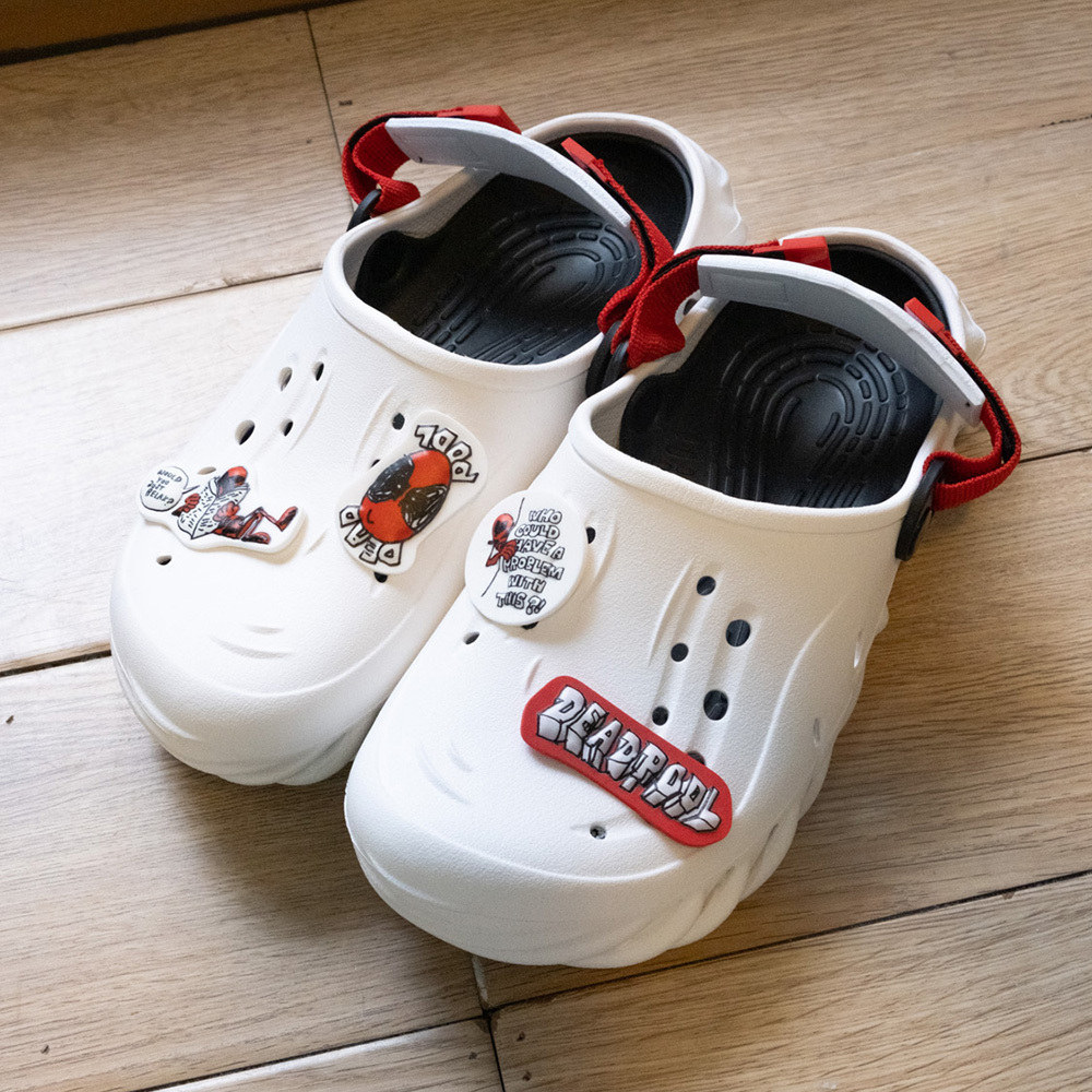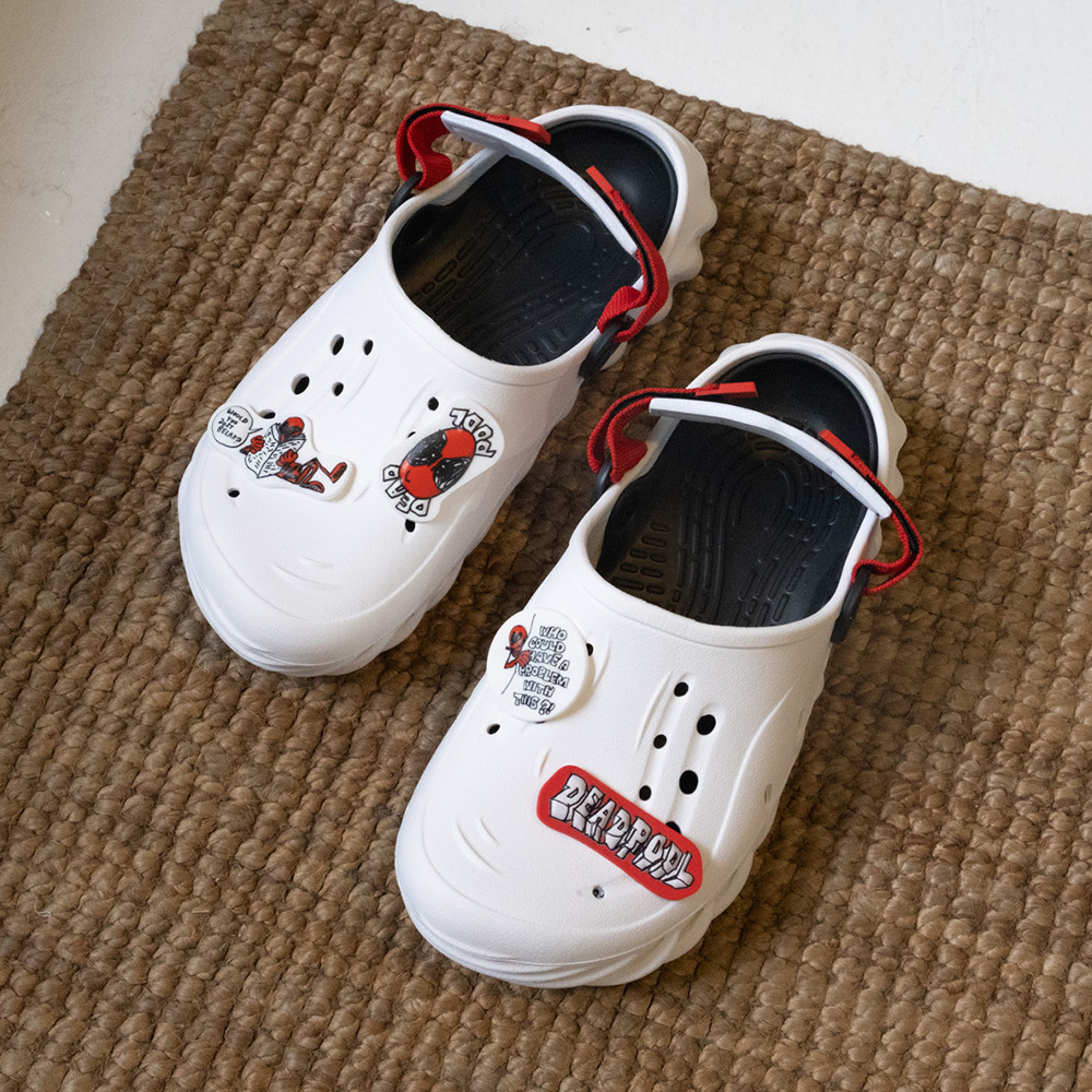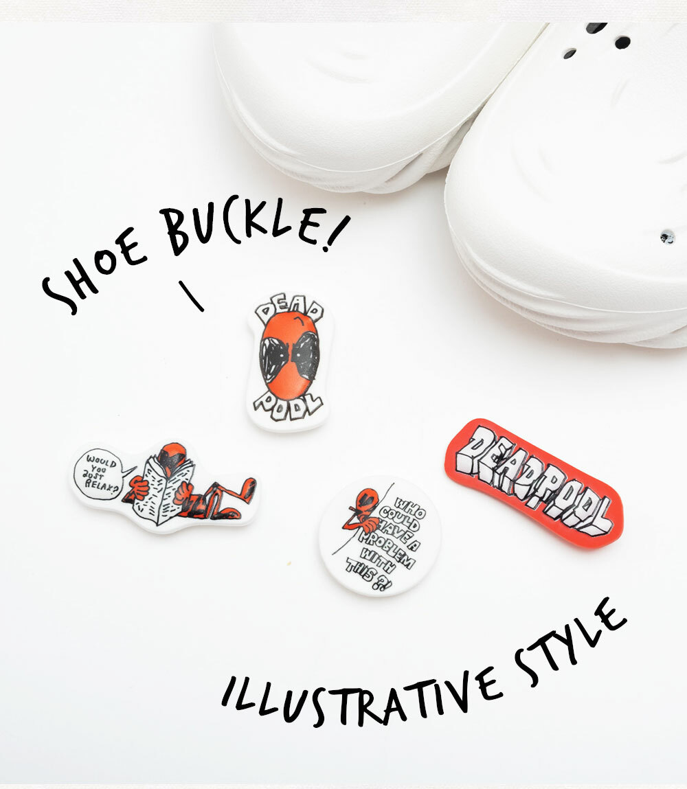 ▹死侍經典配色搭配無厘頭插畫風鞋扣,
