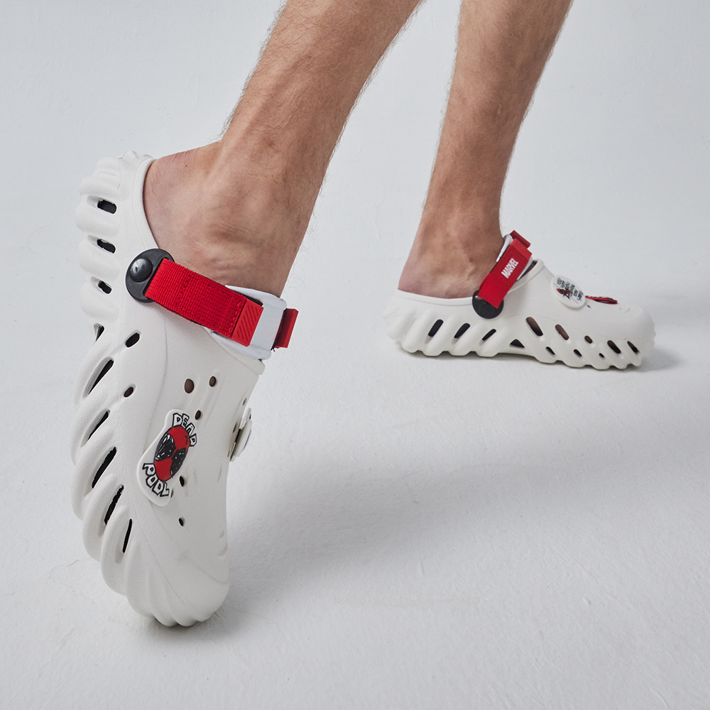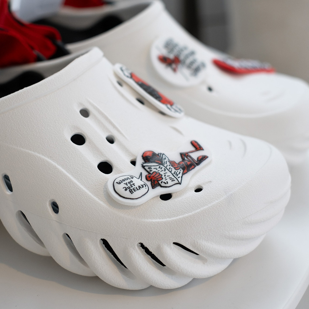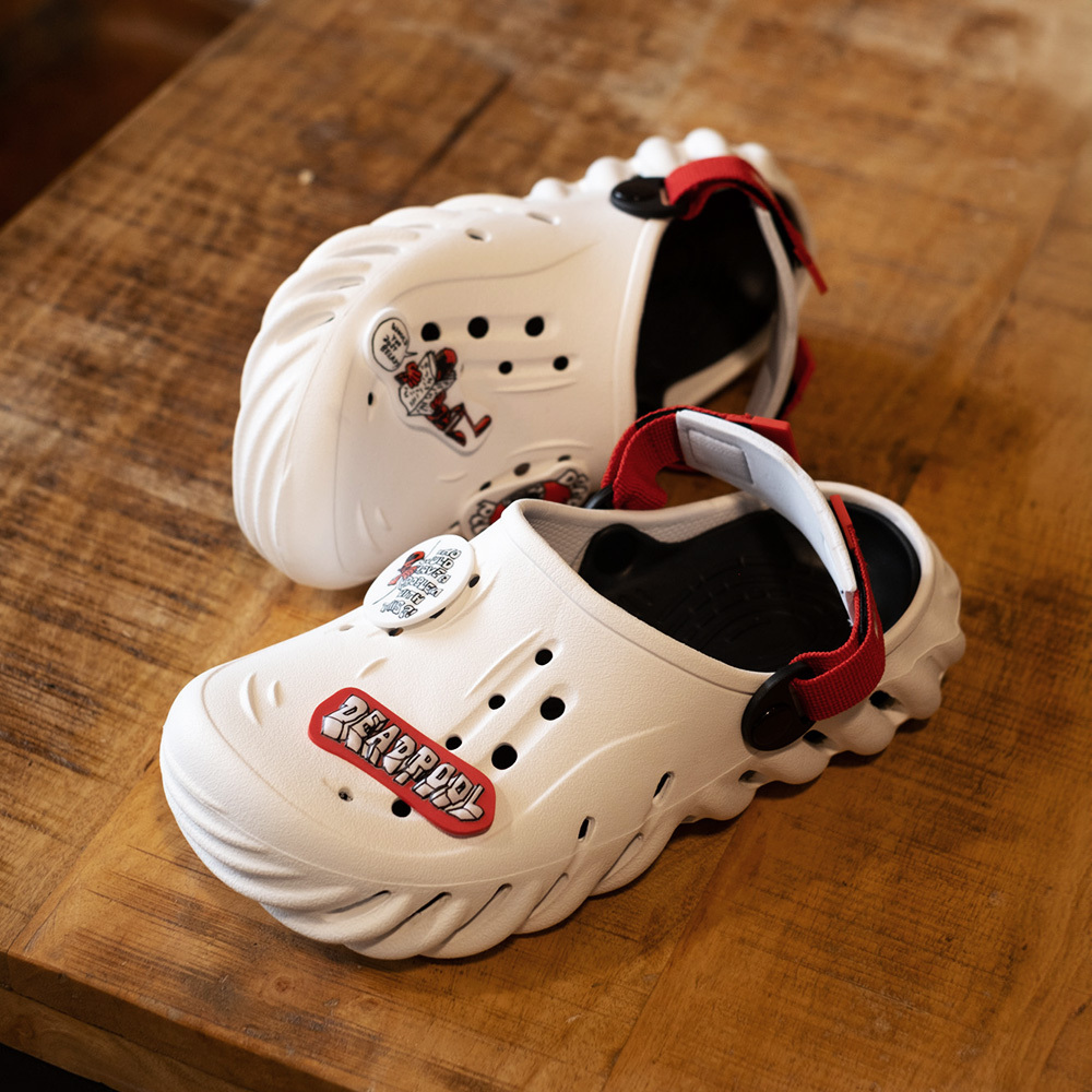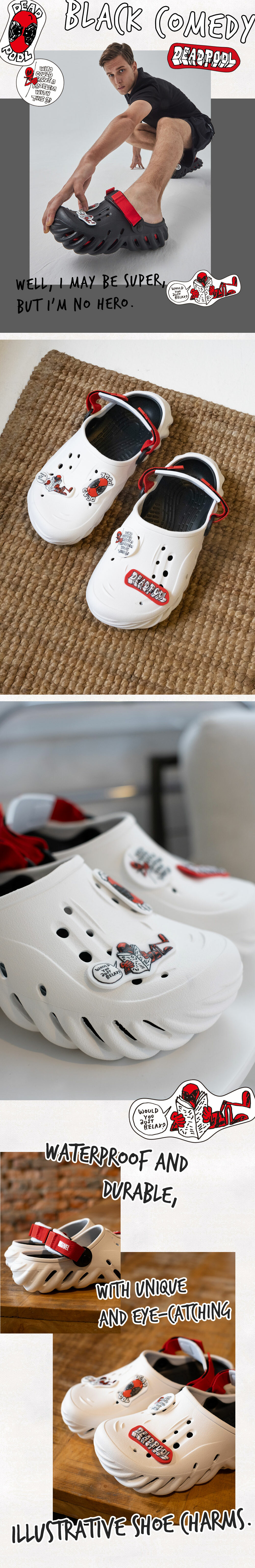 ▹死侍經典配色搭配無厘頭插畫風鞋扣,