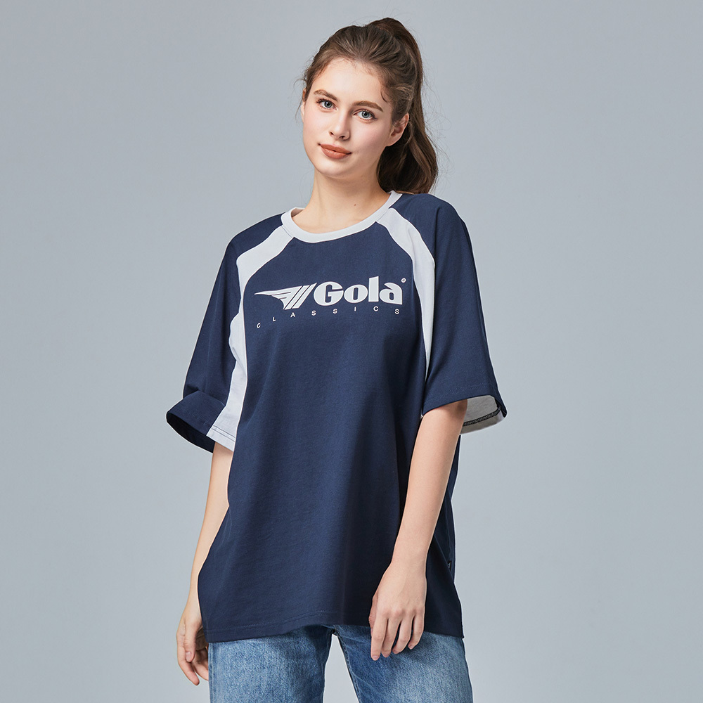 這款中性拼色球衣T恤採用厚實純棉面料,舒適有挺度。大面積撞色拼接設計,搭配中央醒目LOGO,展現率性風格。復古感深藍色,簡約卻不單調,輕鬆打造日常造型。