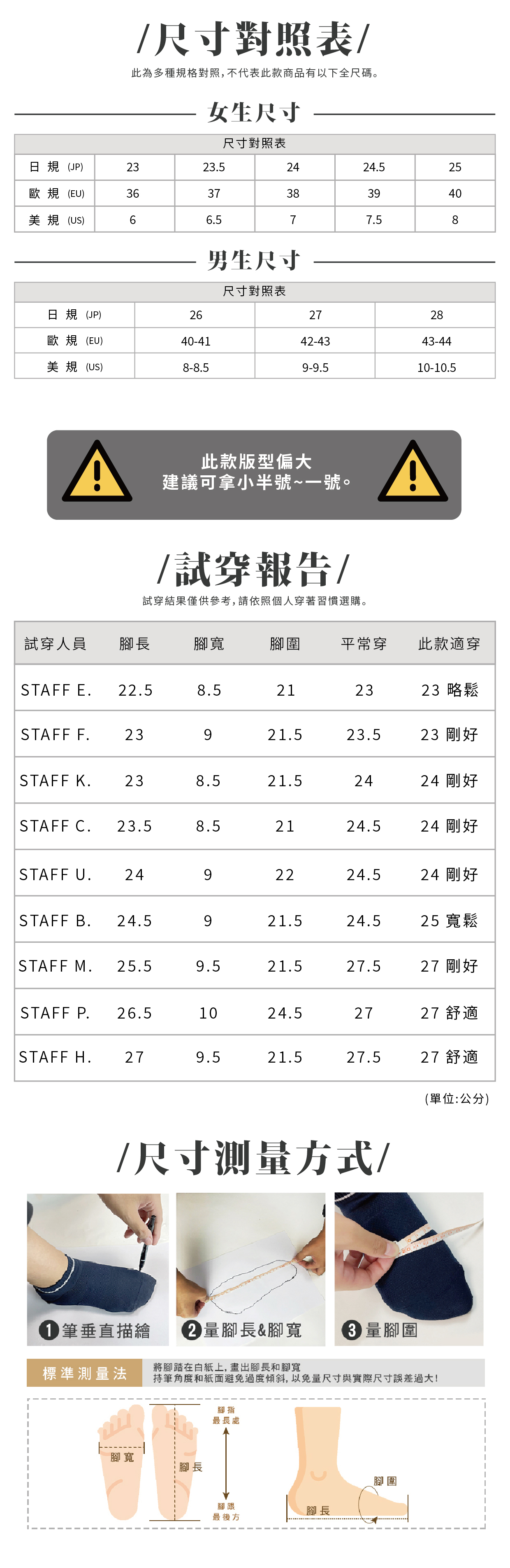 ※此款版型稍大,尺寸建議:
